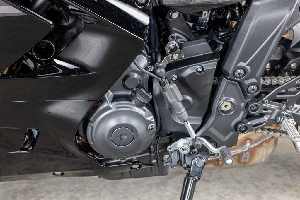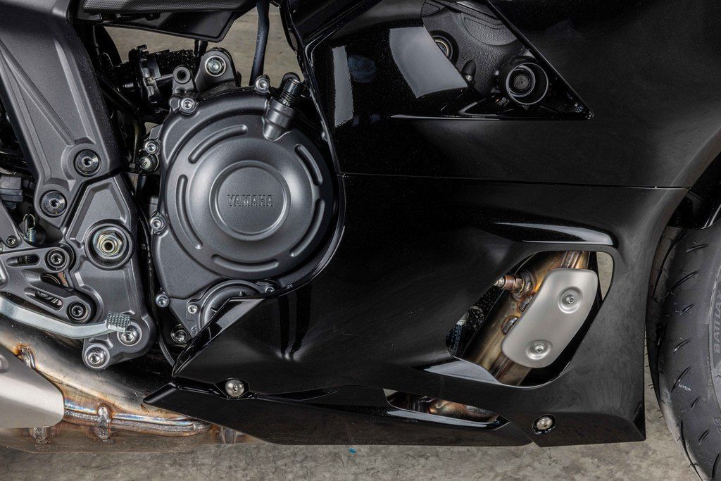Contributing to the visceral connection between rider and machine, the new YZF-R7 adopts the same intake duct shape and asymmetrical funnel lengths as the current MT-07, harnessing the bike's induction roar for an enhanced feeling of acceleration from its renowned crossplane CP2 engine.