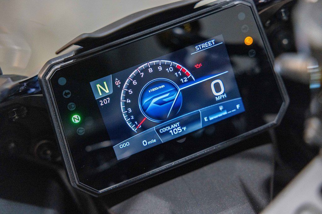 A stunning new full-color five-inch TFT instrument display features four selectable themes along with a track-specific mode. Smartphone connectivity enabled through Yamaha's free Y-Connect app allows riders to receive message notifications, calls and listen to music (through use of an aftermarket Bluetooth® headset, not provided). Additionally, full turn-by-turn navigation is now available through the free Garmin® StreetCross app.