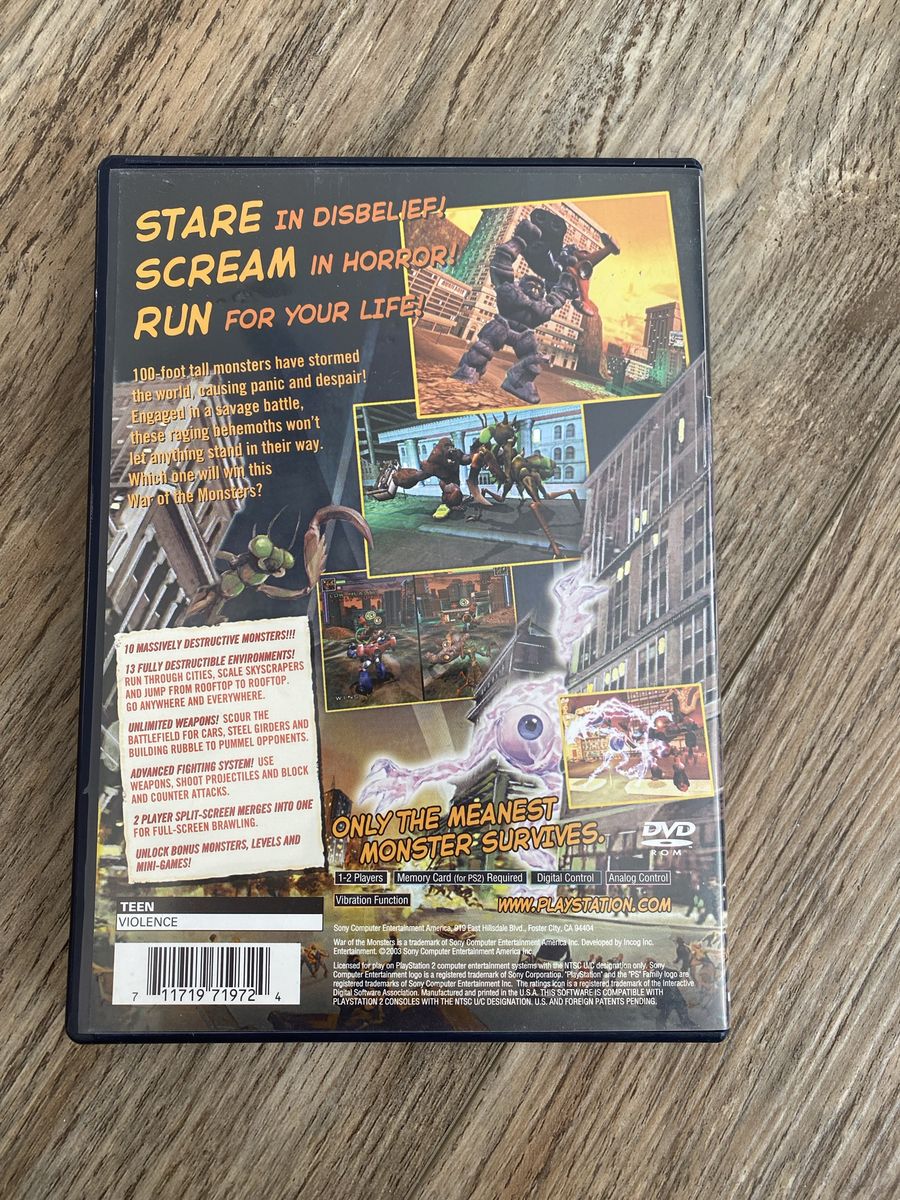 Lightly Used Vintage PlayStation 2 PS2 War of The Monsters 2003 video game Complete with "Original Booklet & Rare Poster".