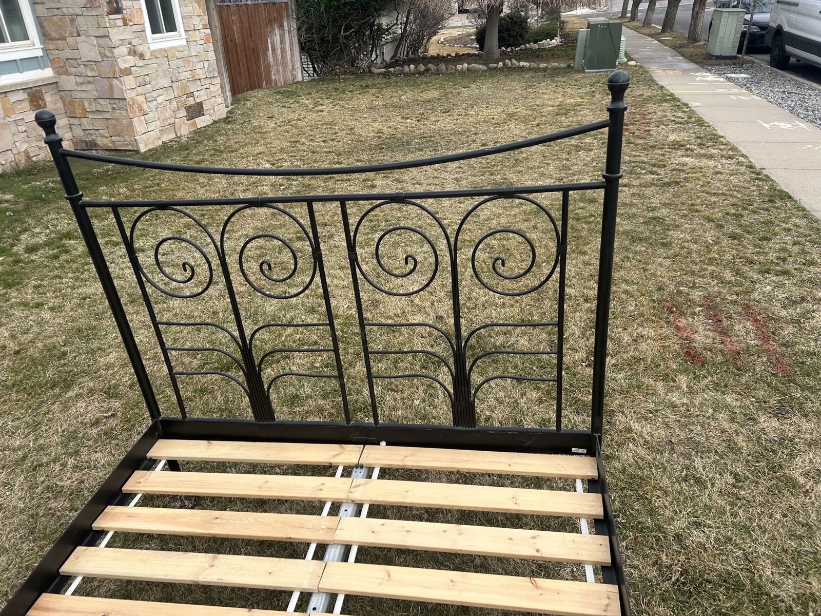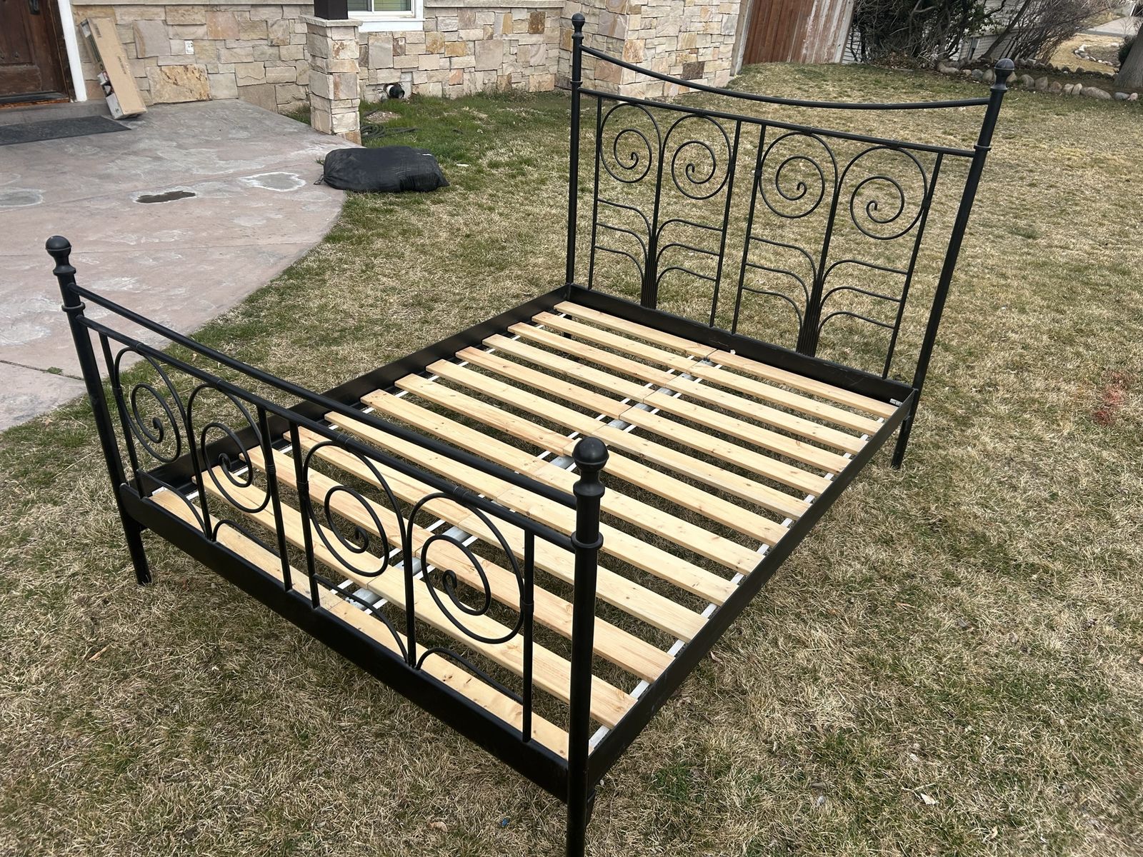 CashAppThis is an IKEA Noreune queen size bedframe in satin black. Everything is here, nothing is missing. This bed frame was rarely used and was in a guest bedroom.