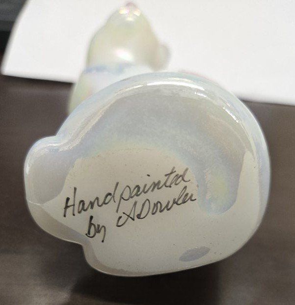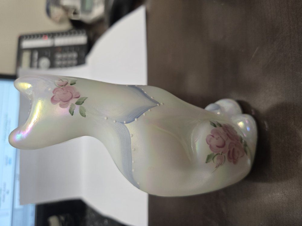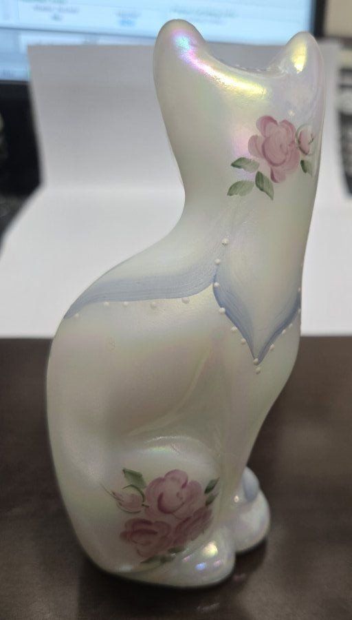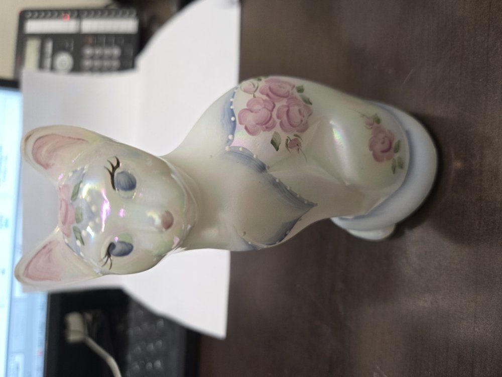 VenmoFenton art glass opal iridescent white stylized cat figurine hand painted 50 dollars