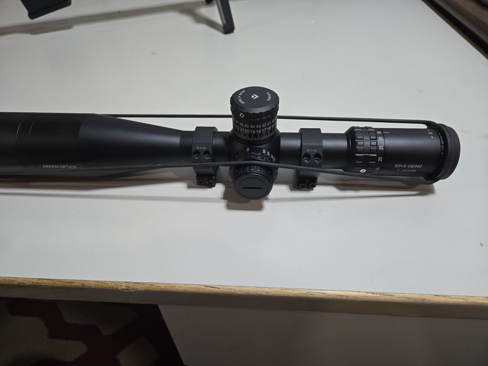Like new Arken EP5 gen2 7-35x56 with Vortex rings. Used for a quick project build, then took it off. $600. No trades.