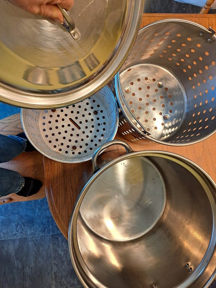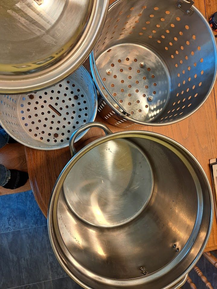 VenmoTurkey Fryer Pot Stainless Steel 2 Baskets Fish Veg Frying Steamer Boiler Stockpot This comes with the standard frying basket, also included is an extra, smaller basket. This is great for steaming vegetables, or making French fries, fried chicken, fish, or smaller turkeys.