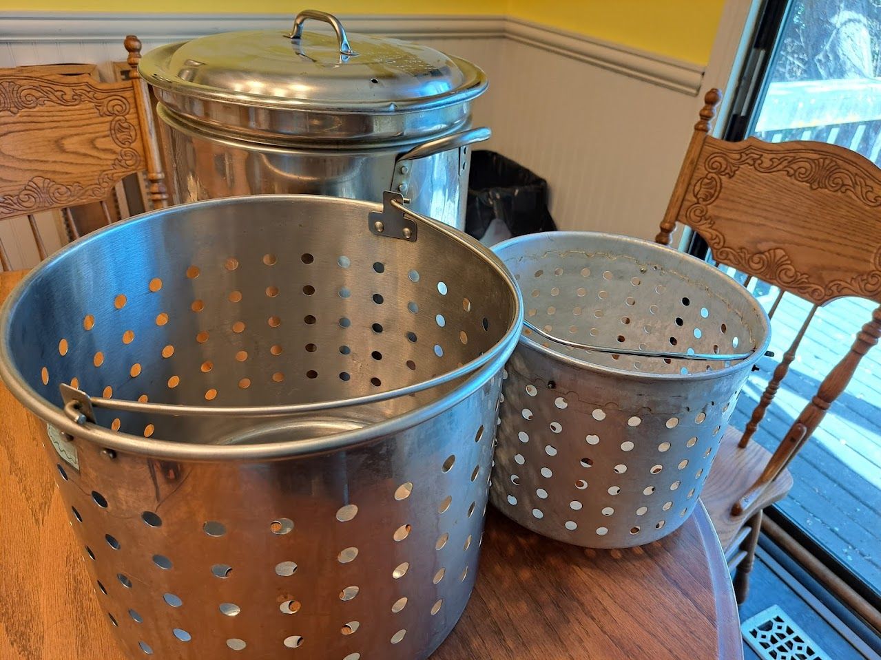Both baskets fit inside the pot for easy storage.