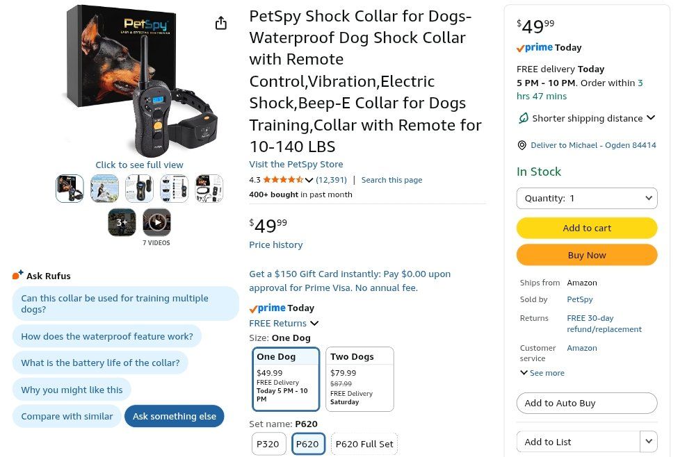 CashAppPetSpy Shock Collar for Dogs-Waterproof Dog Shock Collar with Remote Control,Vibration,Electric Shock,Beep-E Collar for Dogs Training,Collar with Remote for 10-140 LBS
