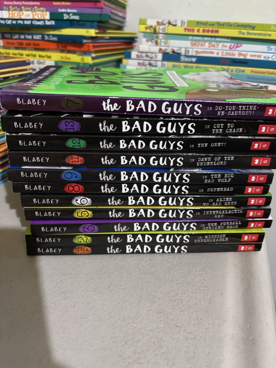 Bad Kitty bundle (8 books) $25 Bad Guys bundle (12 books)$35 Big Nate bundle (4 books) $10