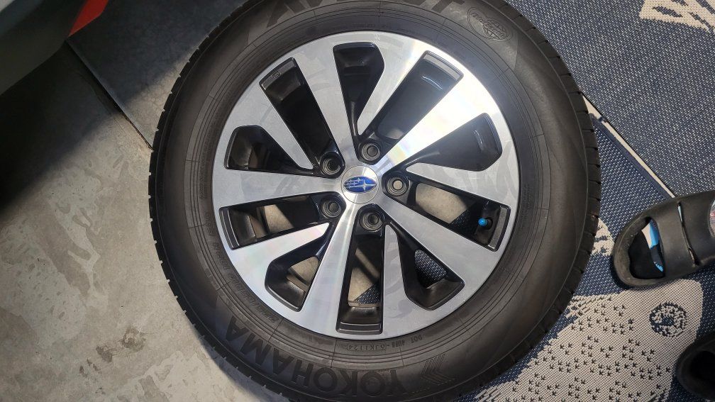 VenmoThese Yokohama Avid GT tires and Subaru factory wheels were just taken off my 2025 Subaru Outback. These have 11,800 miles. Like brand new condition. I upgraded to an all terrain tire and wheel setup. They are bagged up and ready to go. $485 OBO for all 4 tires and wheels. Thanks for looking! Ryan