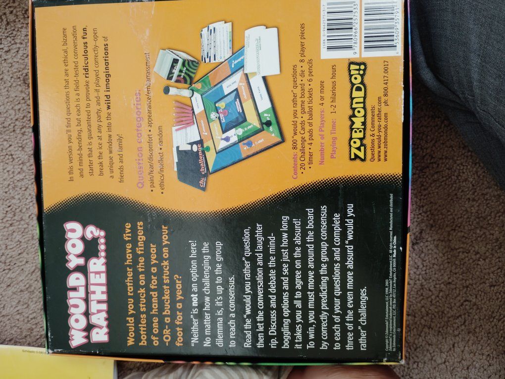 Venmo$15 for all four, or I can piece out individually. We played these games just a couple times each, but they weren't purchased new. They work great for a get together with several people. Smoke and pet free home. Just stored in a box since the last time played. I'm west of Ogden in Taylor
