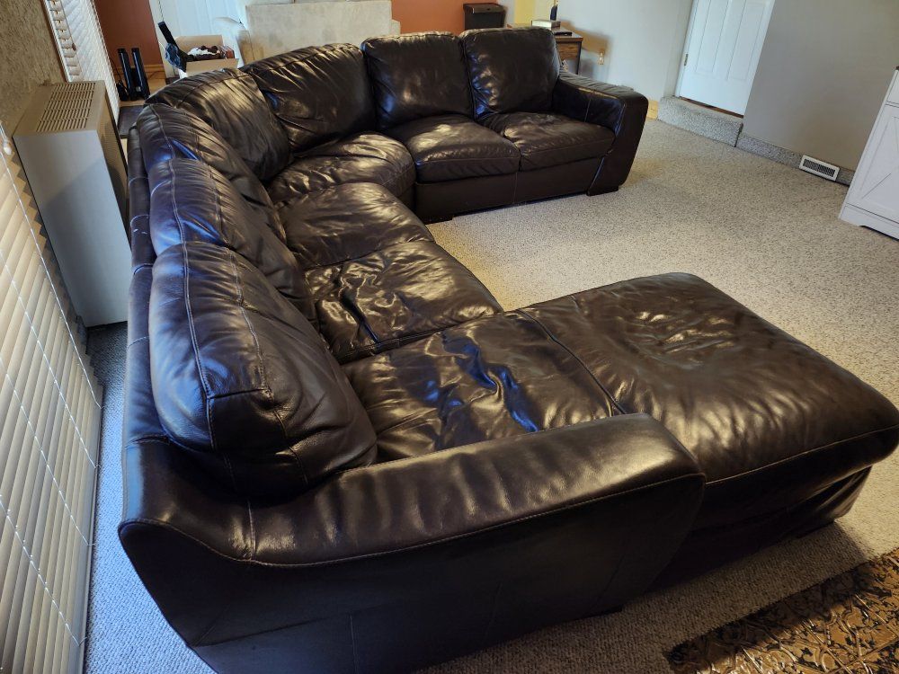 ZelleGenuine Leather Sectional Couch – Comfortable and in Good Condition