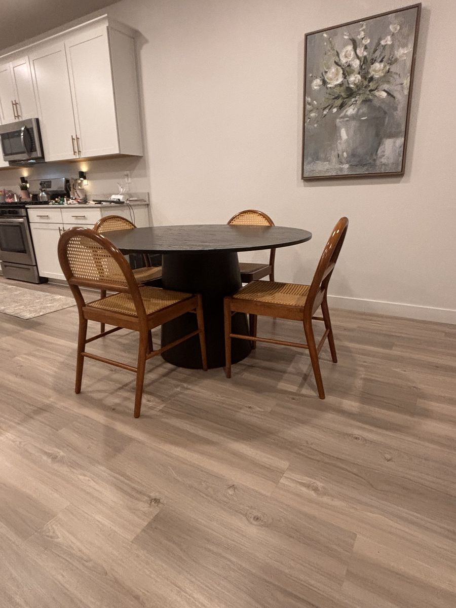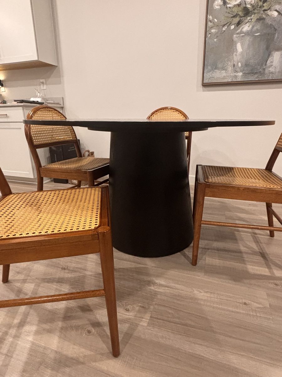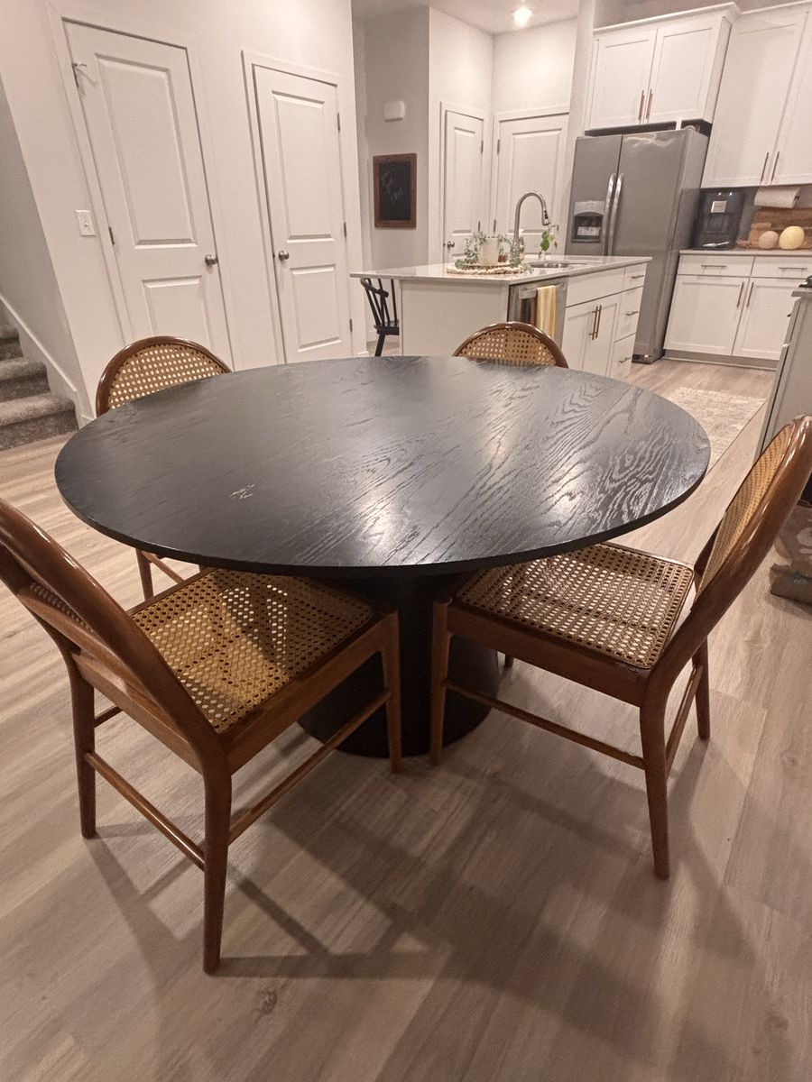 VenmoVery solid black round wooden table. Normal wear and tear