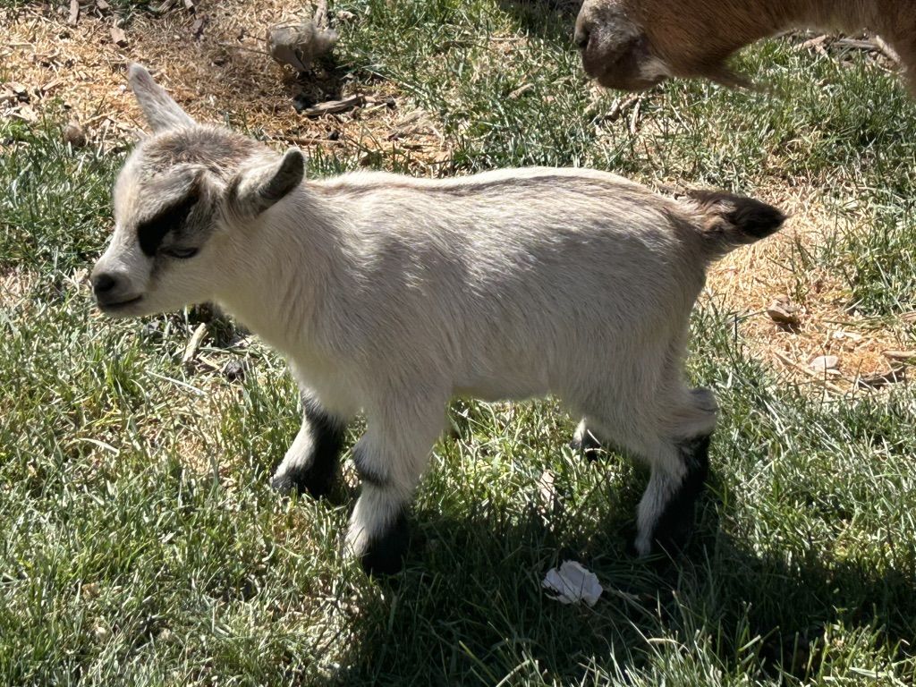 VenmoBorn 4/15/2026 we just disbudded him yesterday and he is started bottle feeding I can wether him if you just want a pet and a friend wethered goats make the best pets. Sire is a NPGA registered Pigmy goat and his mother is full bred Nigerian dwarf goat he will make an excellent addition to improve your herd