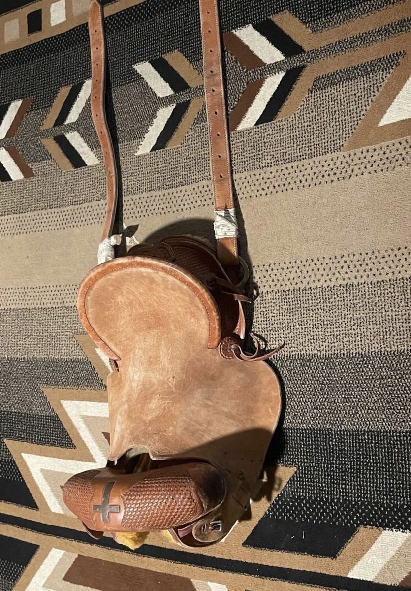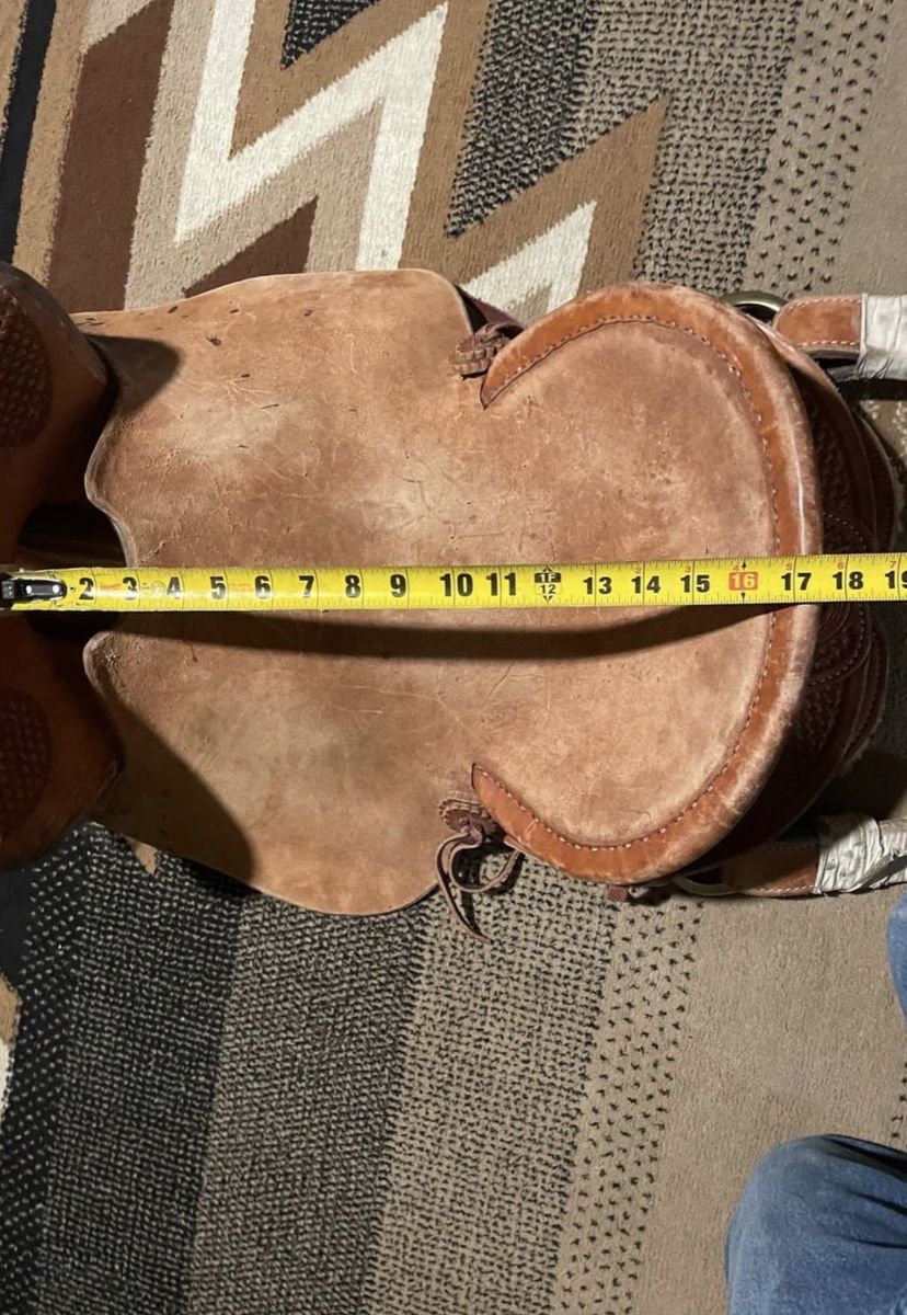 16 3/4 bronc saddle. Good saddle just wanting a smaller seat. Good starter saddle. Doesn’t come with leathers or cinches and latigos. Been on about 55 horses.