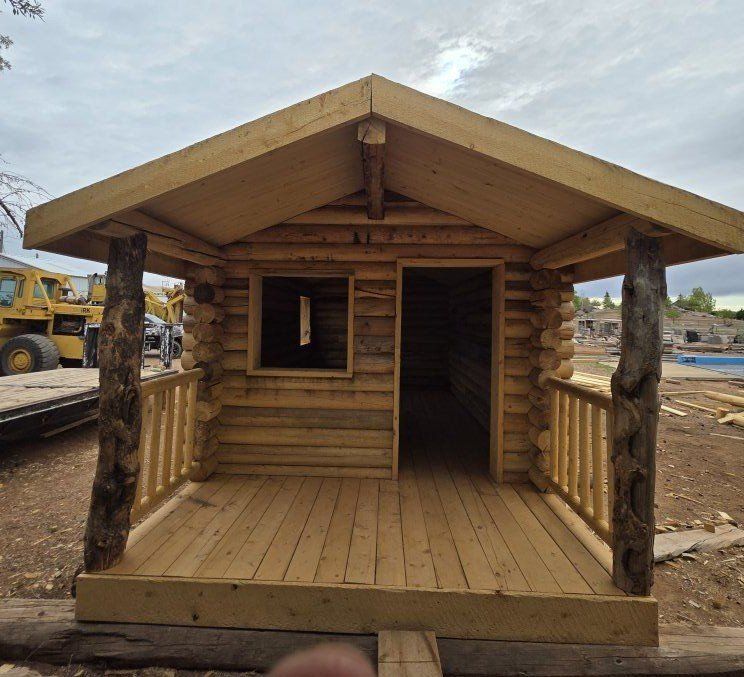 PayPalExquisite cabin on 21' x 11½' floor with covered porch. Cabin itself is 11.5 x 16, T & G flooring and roof, 3x3 windows openings with common door opening, beautiful gnarly posts and railing.