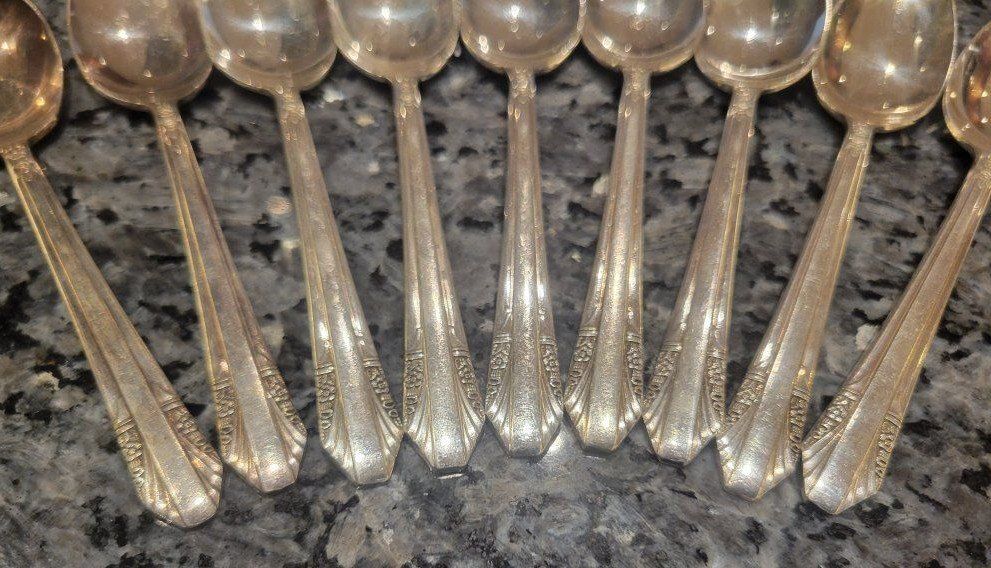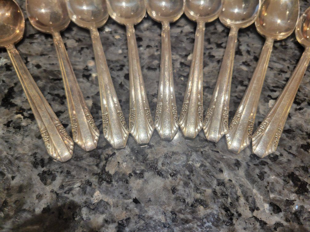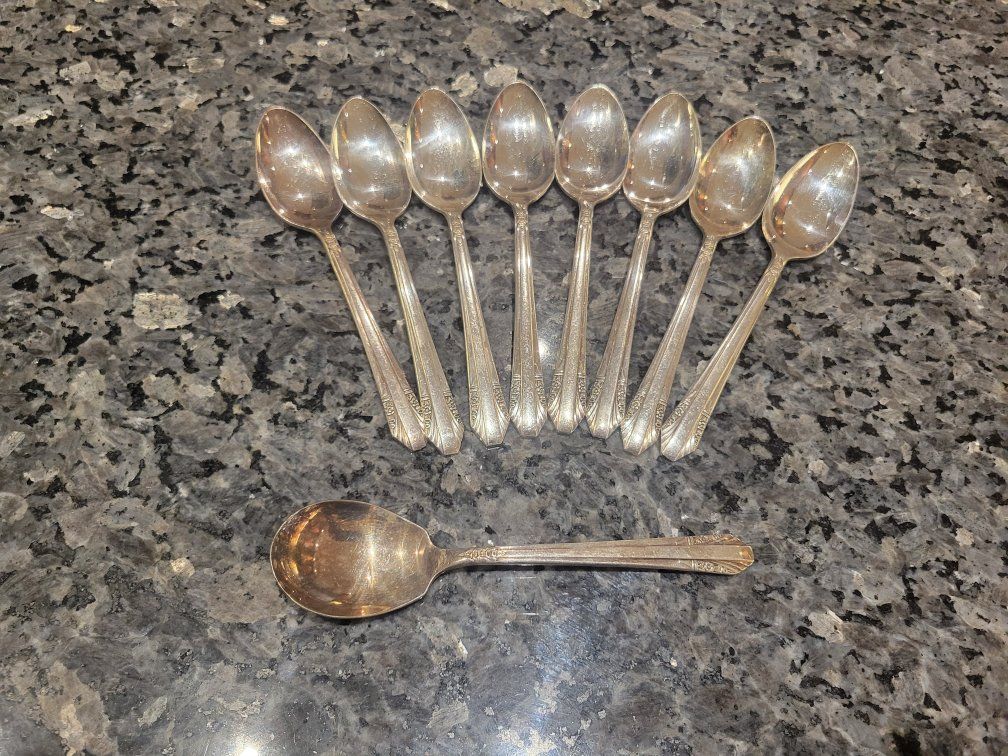1 sugar spoon 8 teaspoons - regular size cereal/ice cream spoon Silver plated Rogers & Bros