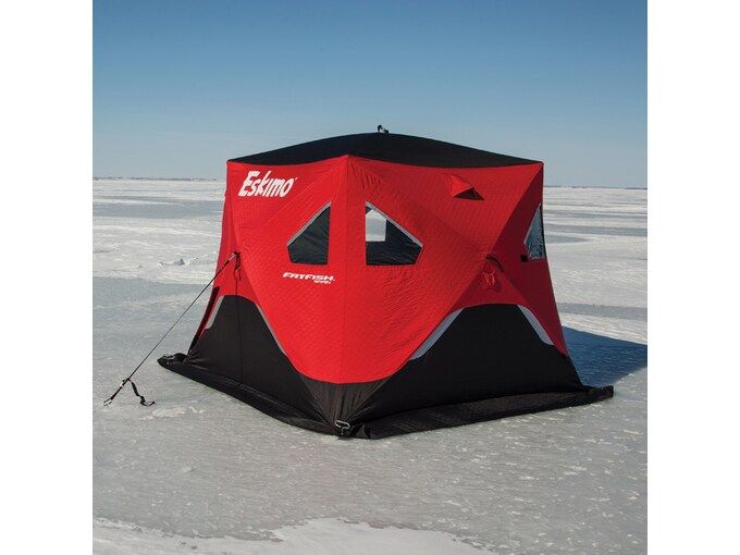 Spacious and insulated ice fishing shelter with durable construction. Easy to set up and transport, ideal for cold-weather fishing trips.
