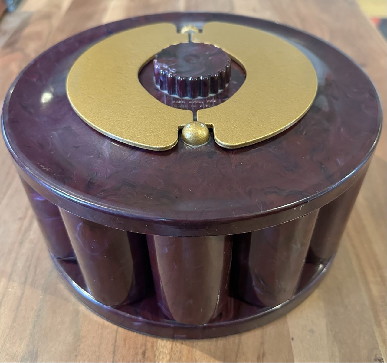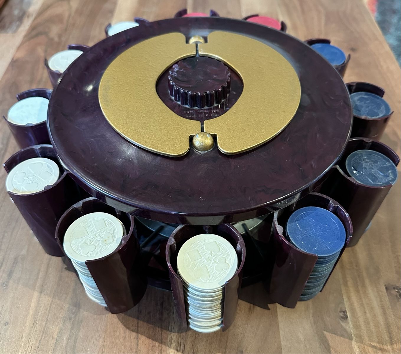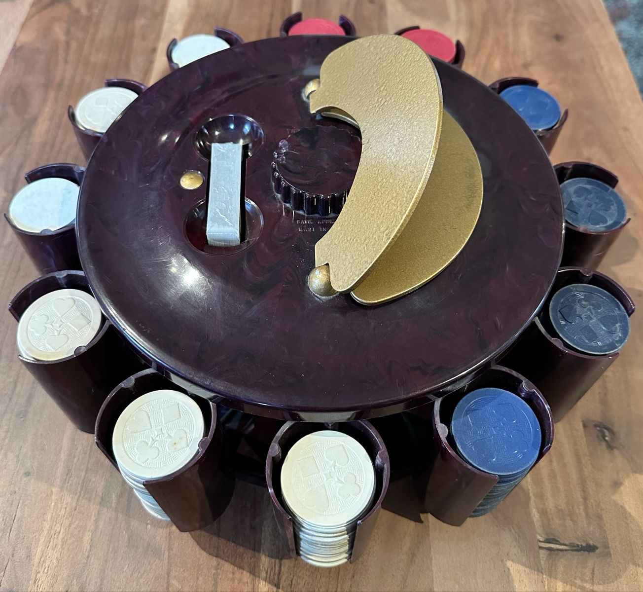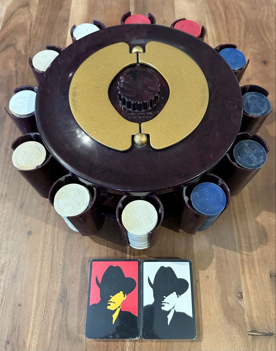 VenmoVintage rotating poker chip carousel set made by Turnit Mfg. Co. (Los Angeles). Cool mid-century design with individual chip holders for each player.