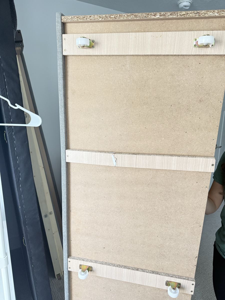 Note: One internal support piece is cracked (see photos). Bed and storage still usable but may need a simple fix.