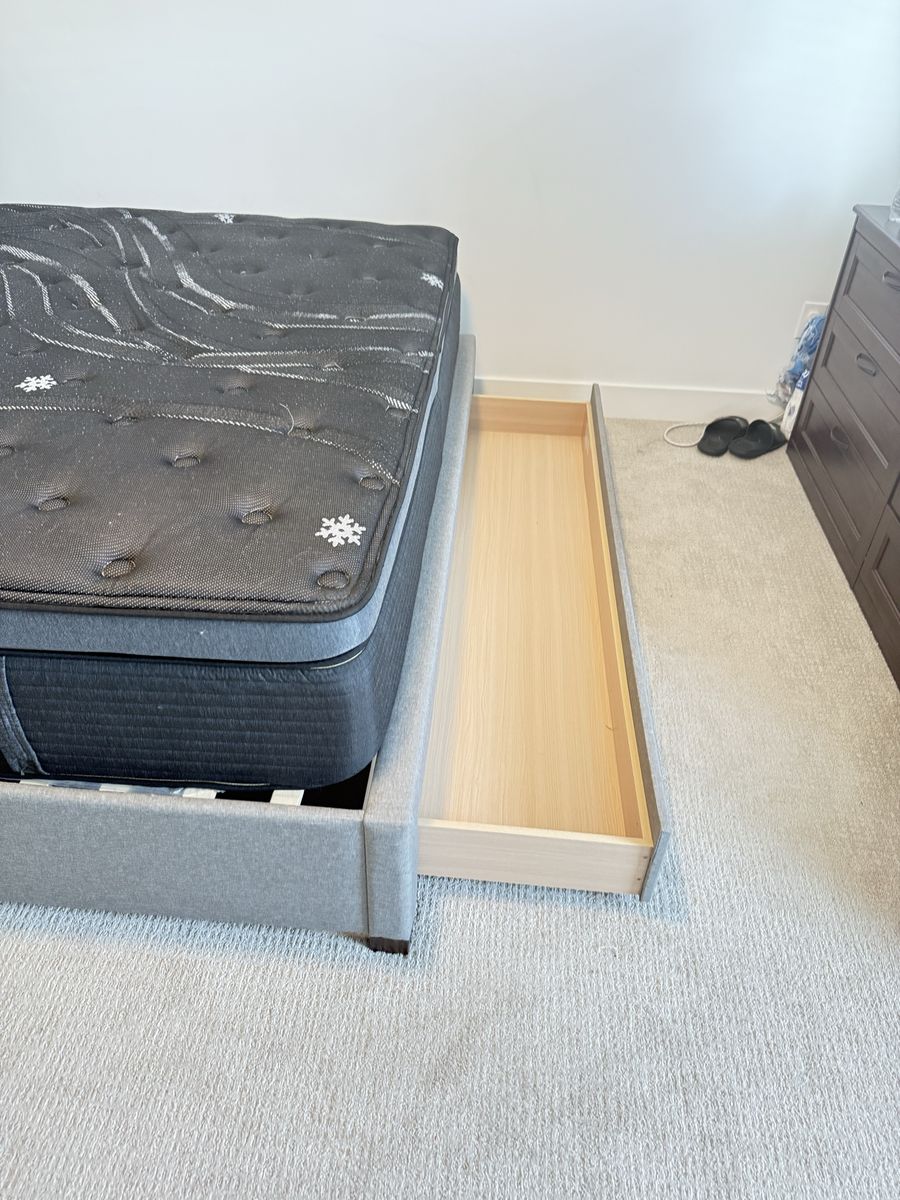 • King size (mattress not included) • Storage drawers • Smoke-free, no pets