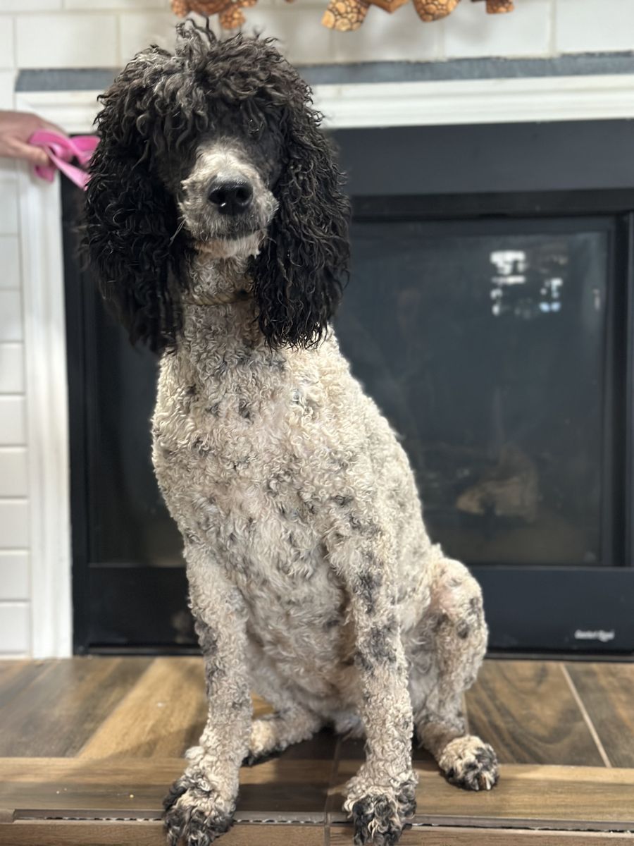 VenmoBeautiful Standard Poodle Puppies - Born 3/20/26 We are excited to announce a new litter of adorable standard poodle puppies! Our mom is a stunning black and white parti poodle, weighing 65 lbs, and our dad is a handsome chocolate/brown standard poodle, weighing around 90lbs. We have 3 girls and 1 boy still available. Litter Details:\