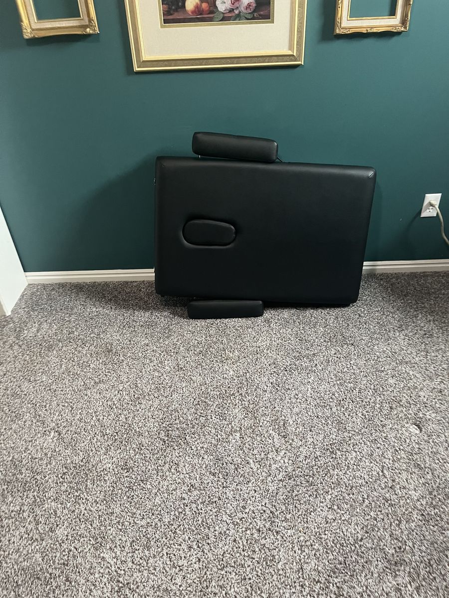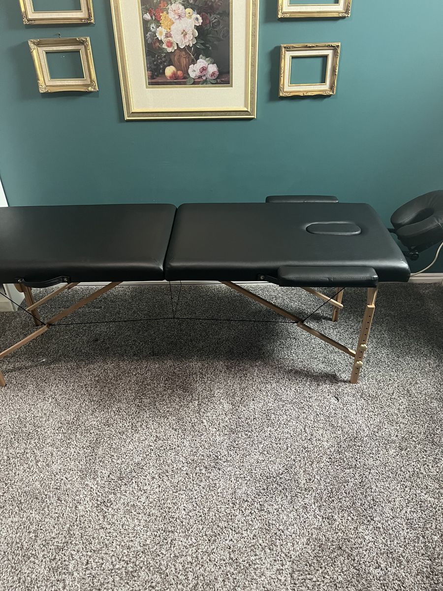 PayPalMassage table 24"w x 73" long with extended arms and head rest . Adjustable height. Folds in half and comes with carrying bag.