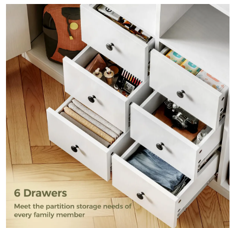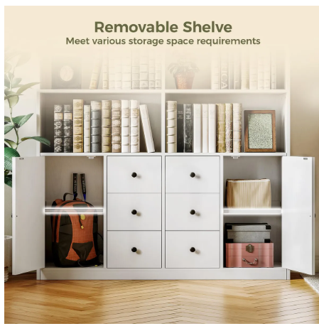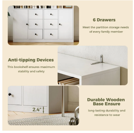 DETAILS: Six drawers and two doors: Bookshelves with drawers and doors with 2 adjustable shelves can help you realize split storage, the perfect combination of display and home storage, making work and life more in sync