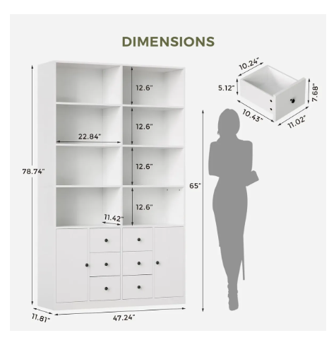 6-tier bookshelf: With dimensions of 47.2 inches wide 11.8 inches deep 78.7 inches high, with a smooth finish and clean lines, it is ideal for almost any space in your home