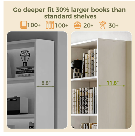 Ample depth: The 11.9-inch-deep bookshelf with doors allows you to place full-size books without any problems