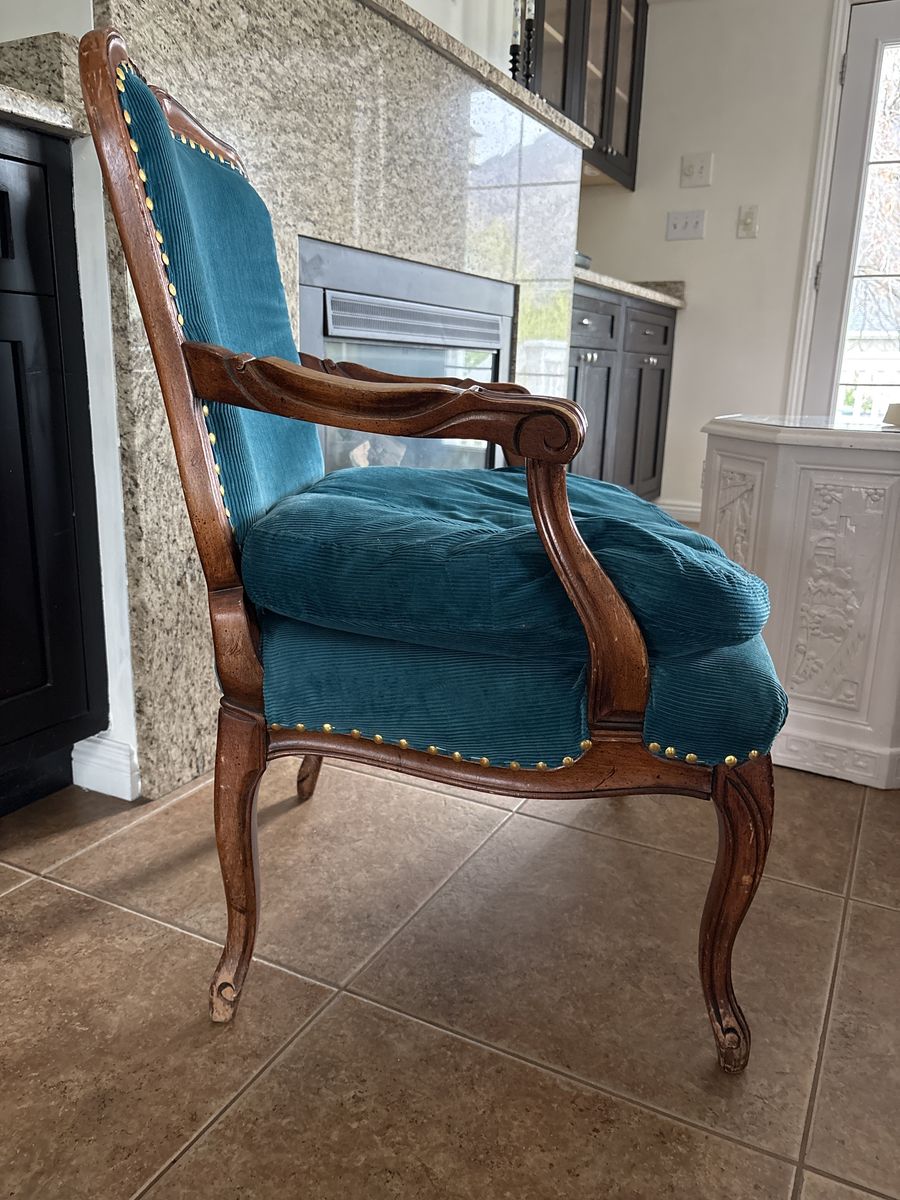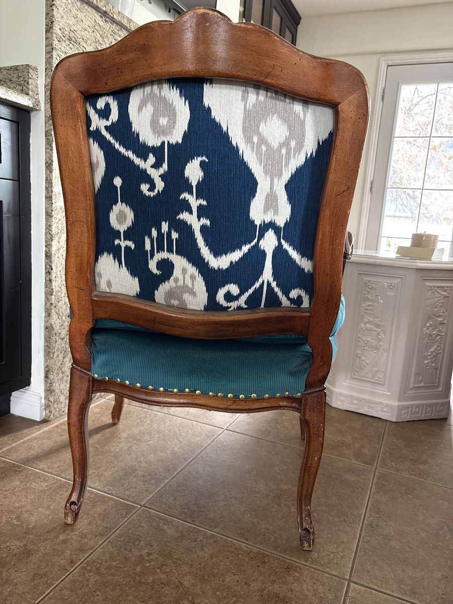 antique chair with fun upholster. Great for an accent chair or a project.