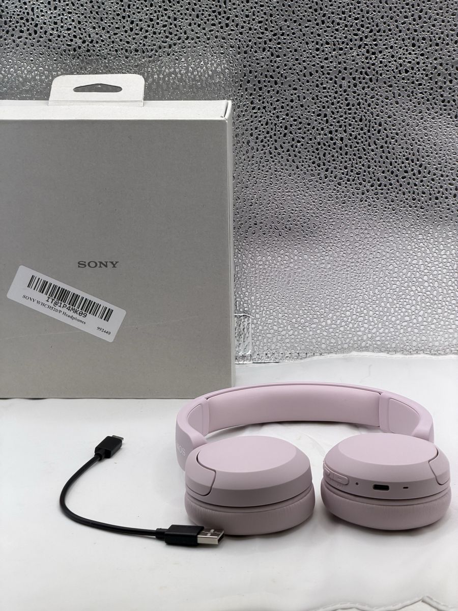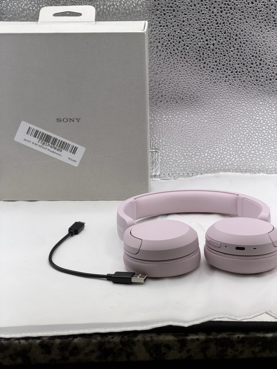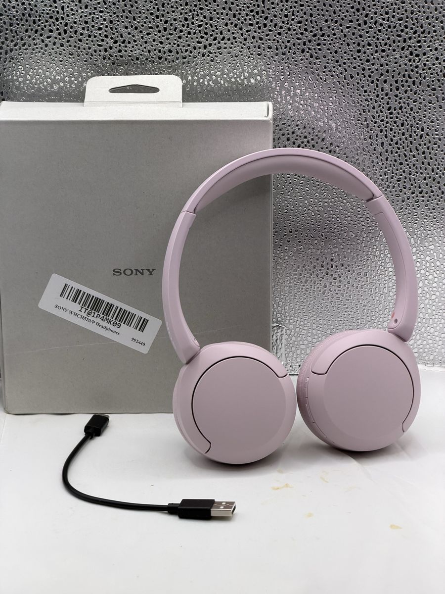This listing is for a pair of Sony WH-CH520 Wireless Bluetooth On-Ear Headphones in Lilac. These headphones are in excellent, open-box condition and come with the original packaging and charging cable.