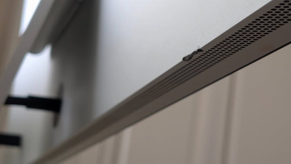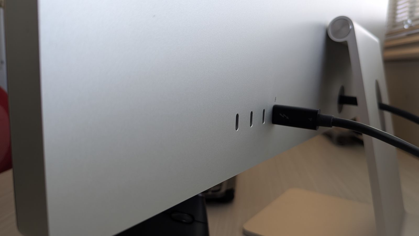 Overall in excellent condition. There is a minor ding on the rear bottom of the monitor that happened from shipping. It is impossible to see from the front and is the only imperfection. Everything is else is perfect.
