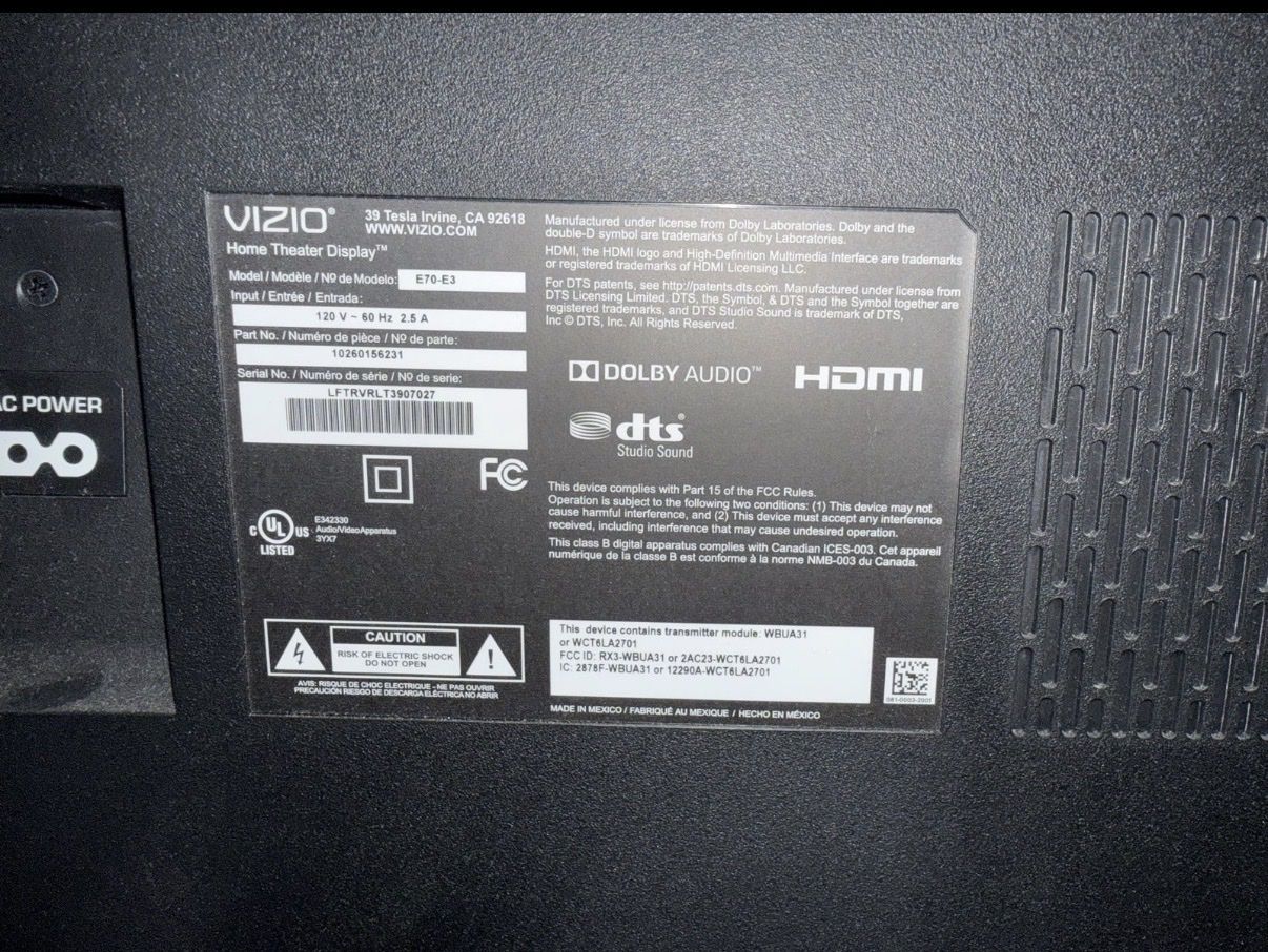 CashApp70" Vizio smart TV in great condition. Works perfectly, no issues. Comes with remote, legs, and power cord. Just upgraded so no longer need it. Pickup only.