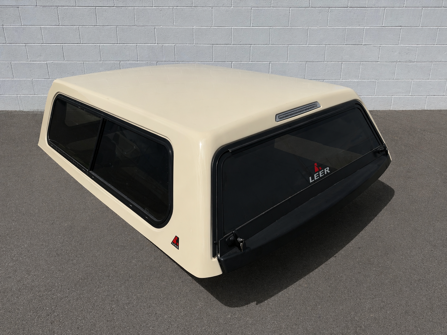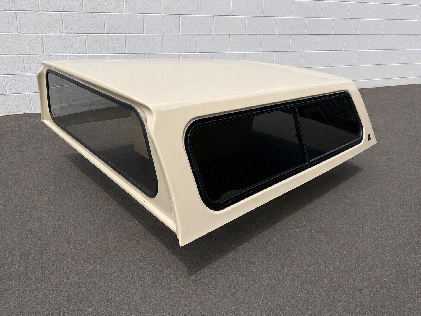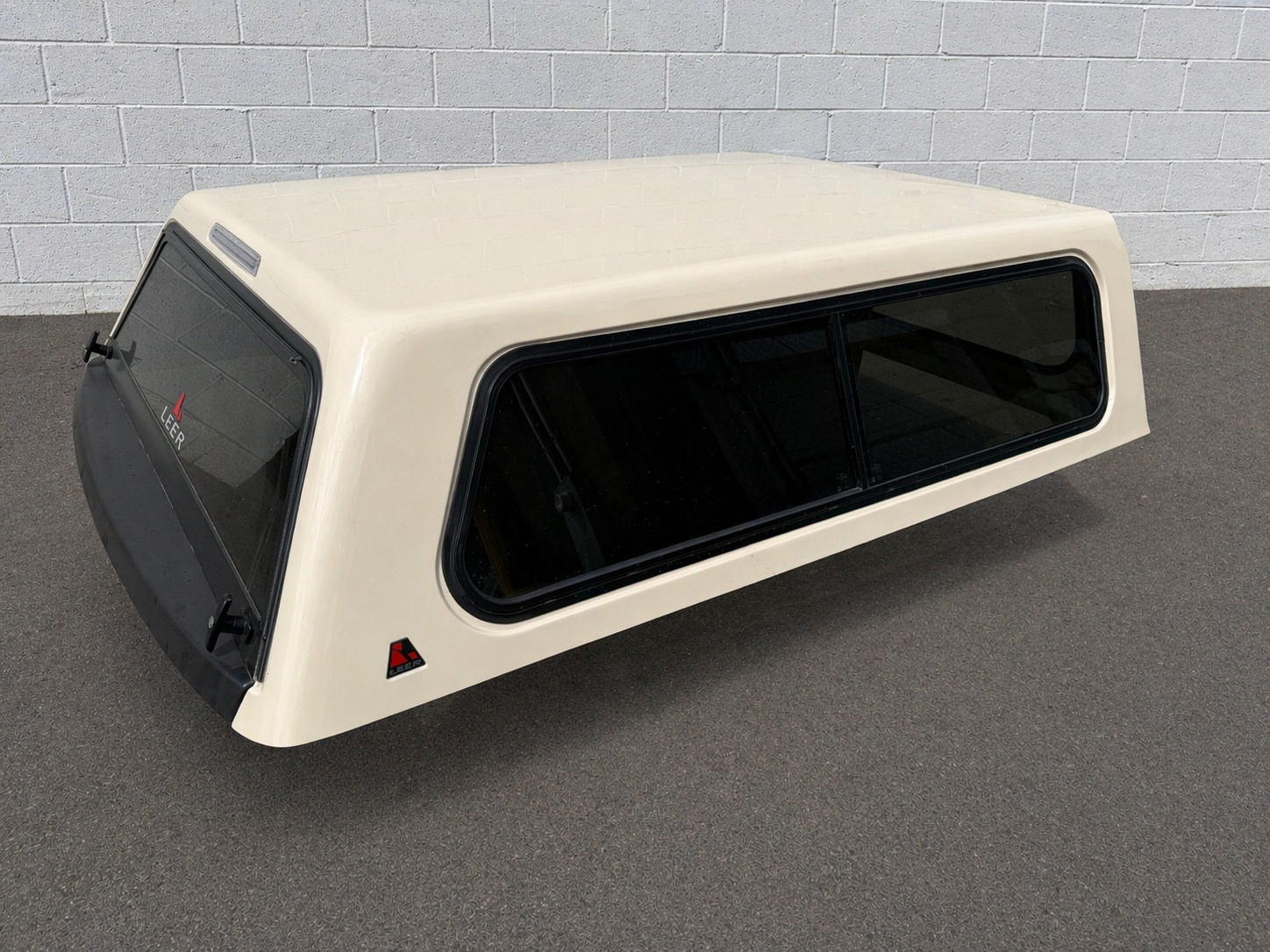 Light tan camper shell removed from a newer GMC Sierra with a 6 ft bed. Clean look and great for work or everyday use.