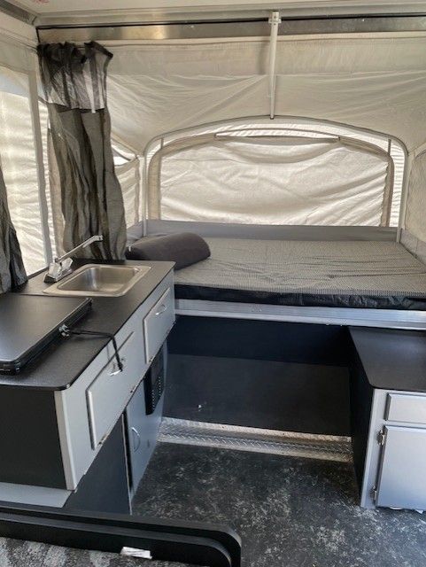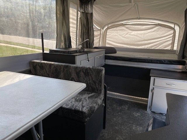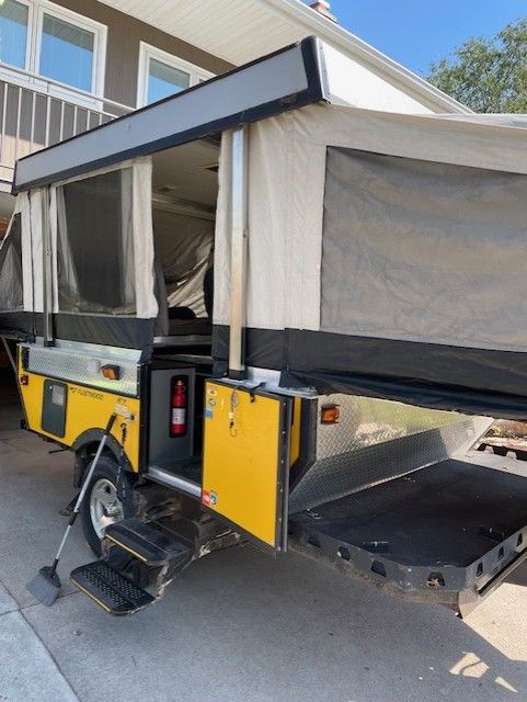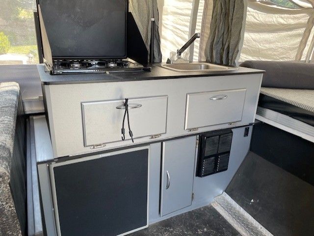 VenmoWell maintained Fleetwood E1 heavy duty pop up tent trailer in good condition. No tears or leaks in any canvas or windows. Great for off road or camp ground camping. Sleeps 5 (including coverting dining area to bed). Propane gas stove, heater and fridge are all in working order. Also have portable toilet that can be stored in the camper.