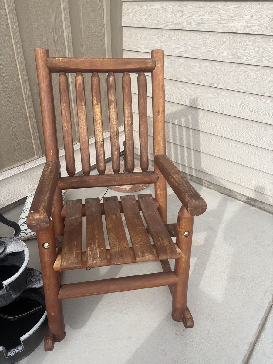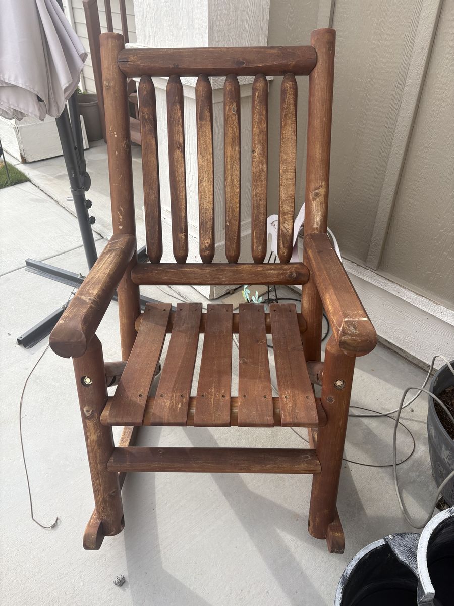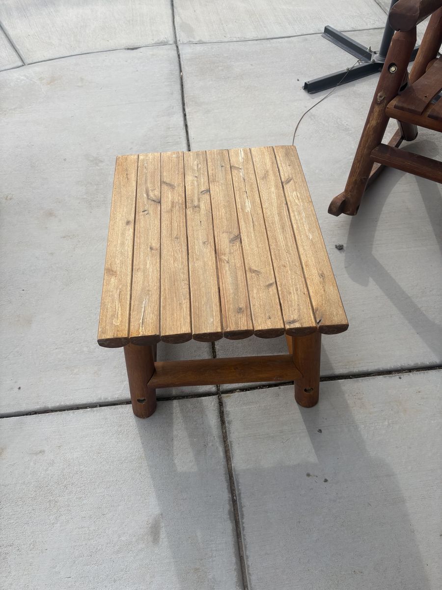 VenmoSturdy wooden outdoor furniture set $800/offer. Has a 2-seater rocking bench, two single rocking chairs, and a small side table. Great for a patio or porch. Wood has been well maintained and properly sealed every year.
