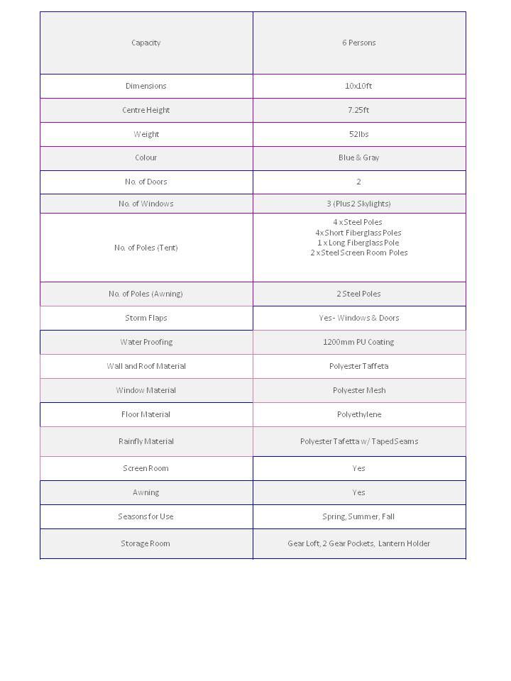 The tent is a 10X10, 7ft head room and with a 6X7 screen room [ see pixs]