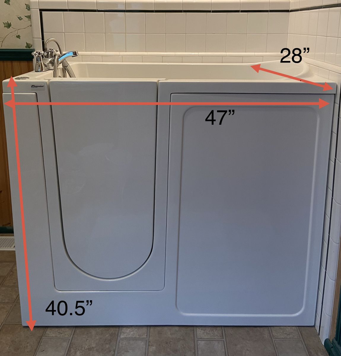 VenmoLeft sided drain Premier walk-in tub. 16 jets with 3 settings. Minimally used, pet free, smoke free home. Dimensions in picture.