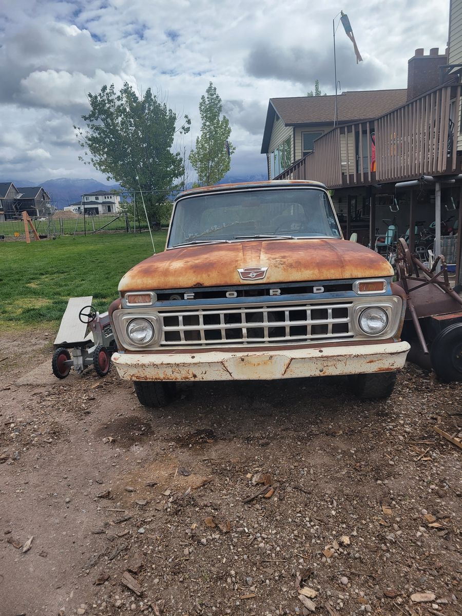 1965 Ford short bed 6 cylinder. 3 speed needs, water pump.have new radiator also.352 engine to go with it. Plus 1 bedside patch panel. $2800 Call corey 80154081one9