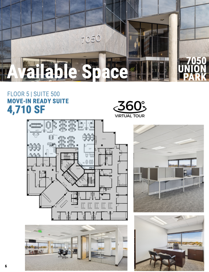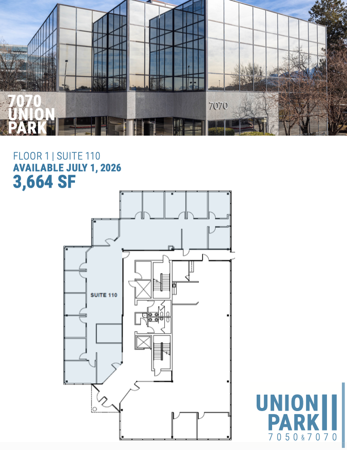 Two suites available at Union Park II, a premier Class A office campus at the corner of Fort Union Blvd and Union Park Avenue.