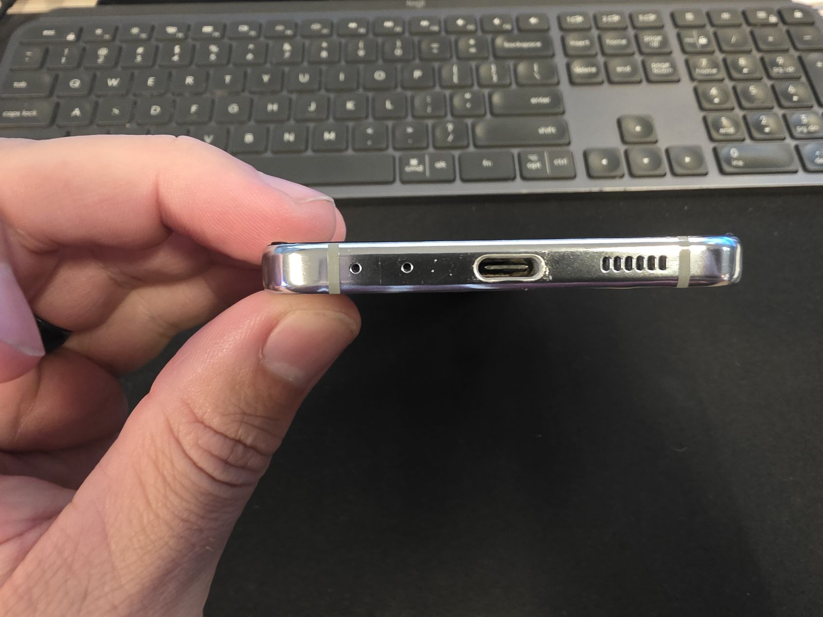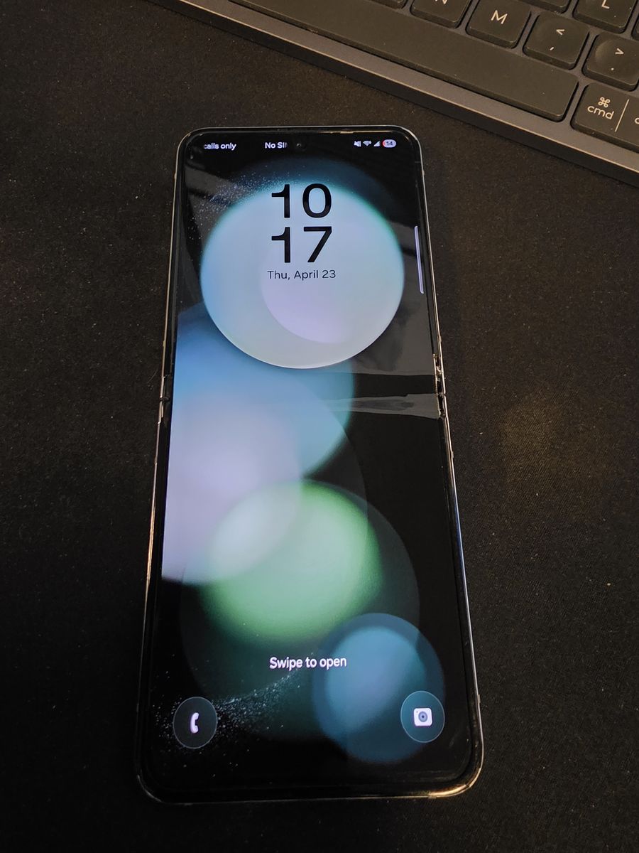 VenmoGreat condition, just missing a small piece of plastic at the bezel on the inner screen. Doesn't affect phone except for water resistance, I guess. Been using it for months with no problems. Locked to T-Mobile. Switched carriers and can't use it over there. Thanks.