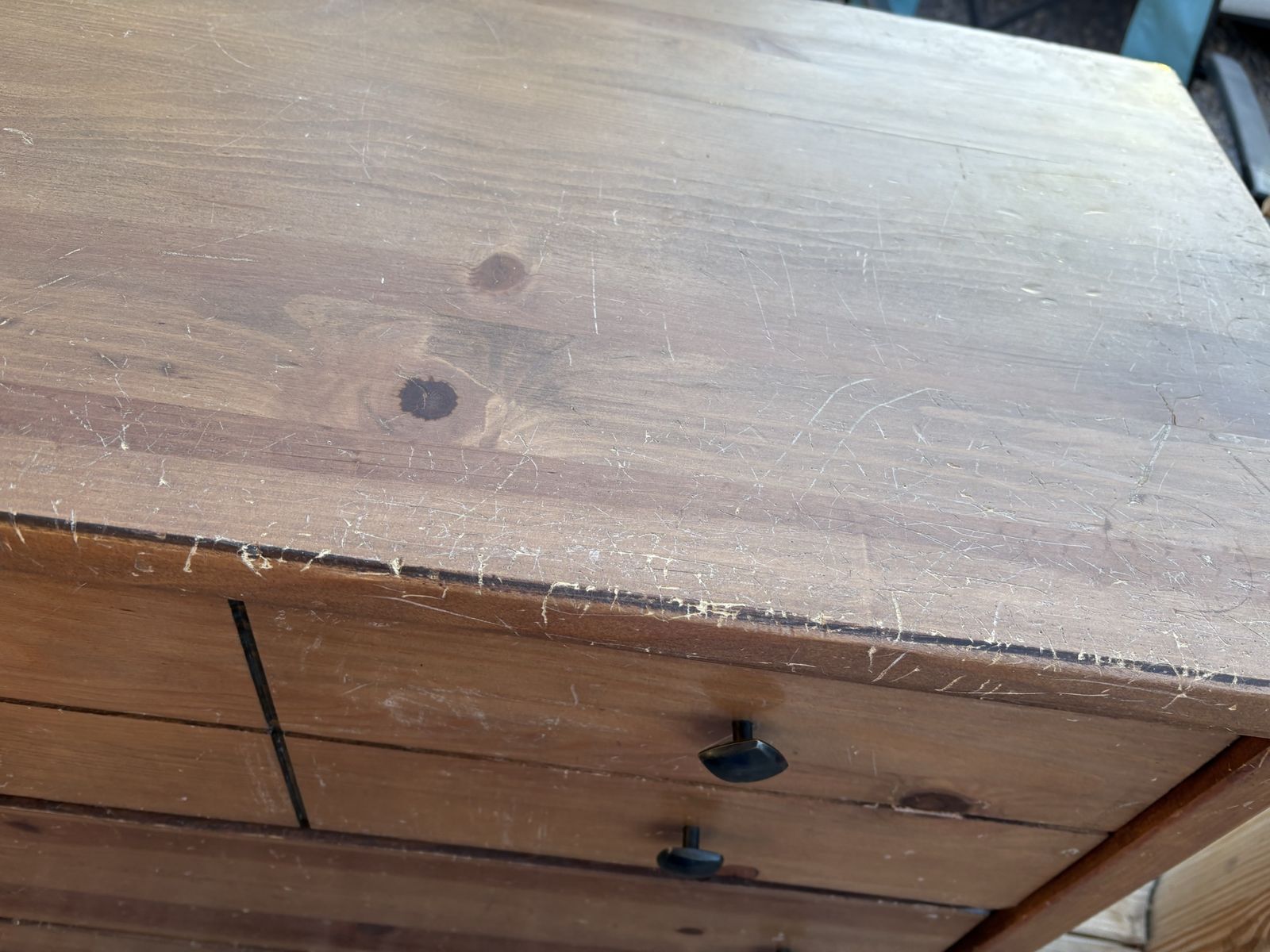 All drawers work good, has scratches as seen, corner shaved off. 64.5” long 17” wide 34” tall $50 obo