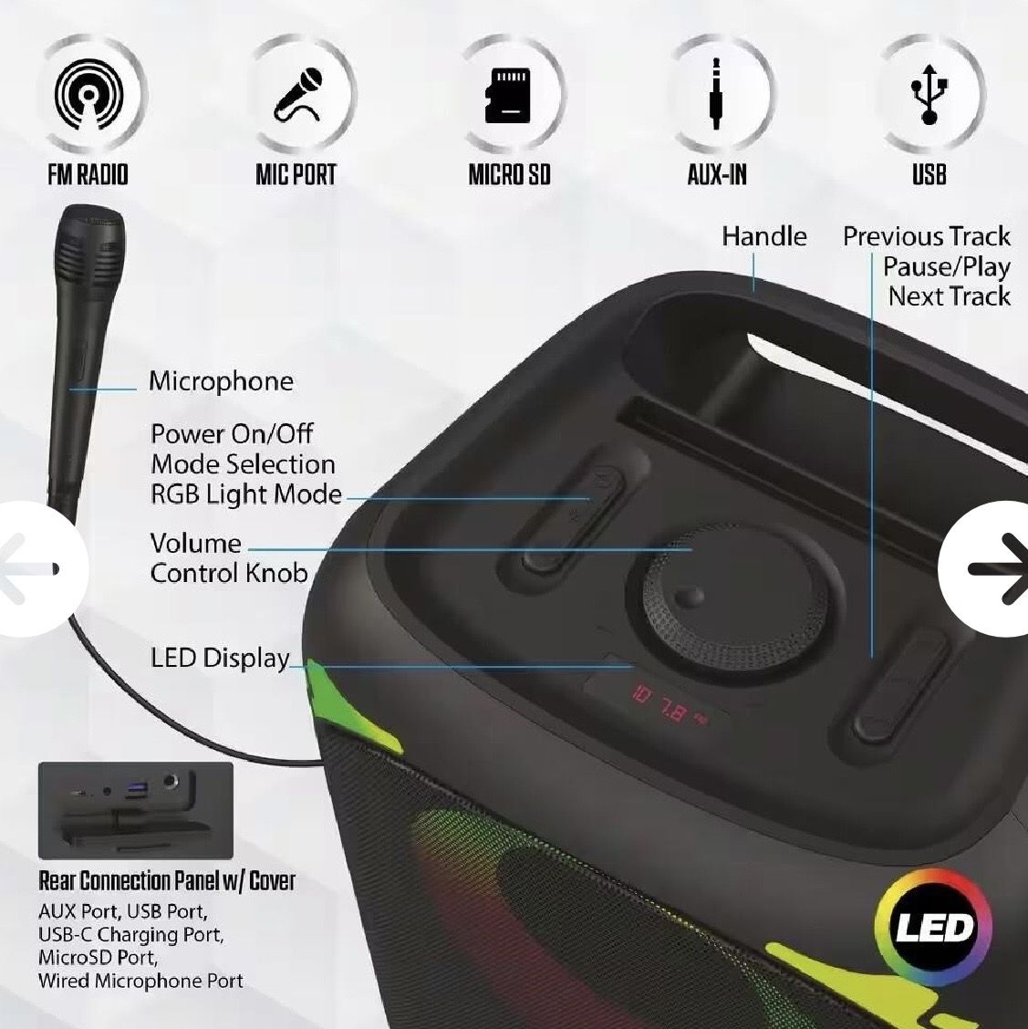 New Bluetooth Portable LED Speaker. comes with a microphone. $65