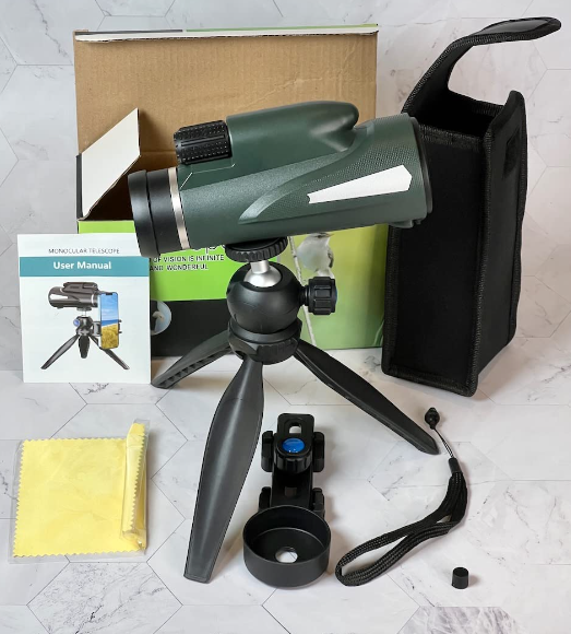Zelle12× Magnification & 50mm Objective Lens: This monocular is equipped with 12×50 high power magnification, which is the best magnification for distance watching. It provides large field of view (246ft/1,000Yds), extending your adventures to greater possibilities. Premium FMC Lens & BAK4 Prism: The HD monocular telescope uses 18mm BAK4 optics prism and FMC (Fully Multi-Coating) lens, which could increase the monocular's light transmittance and unnecessary light reflection, delivering clear and sharp pictures.