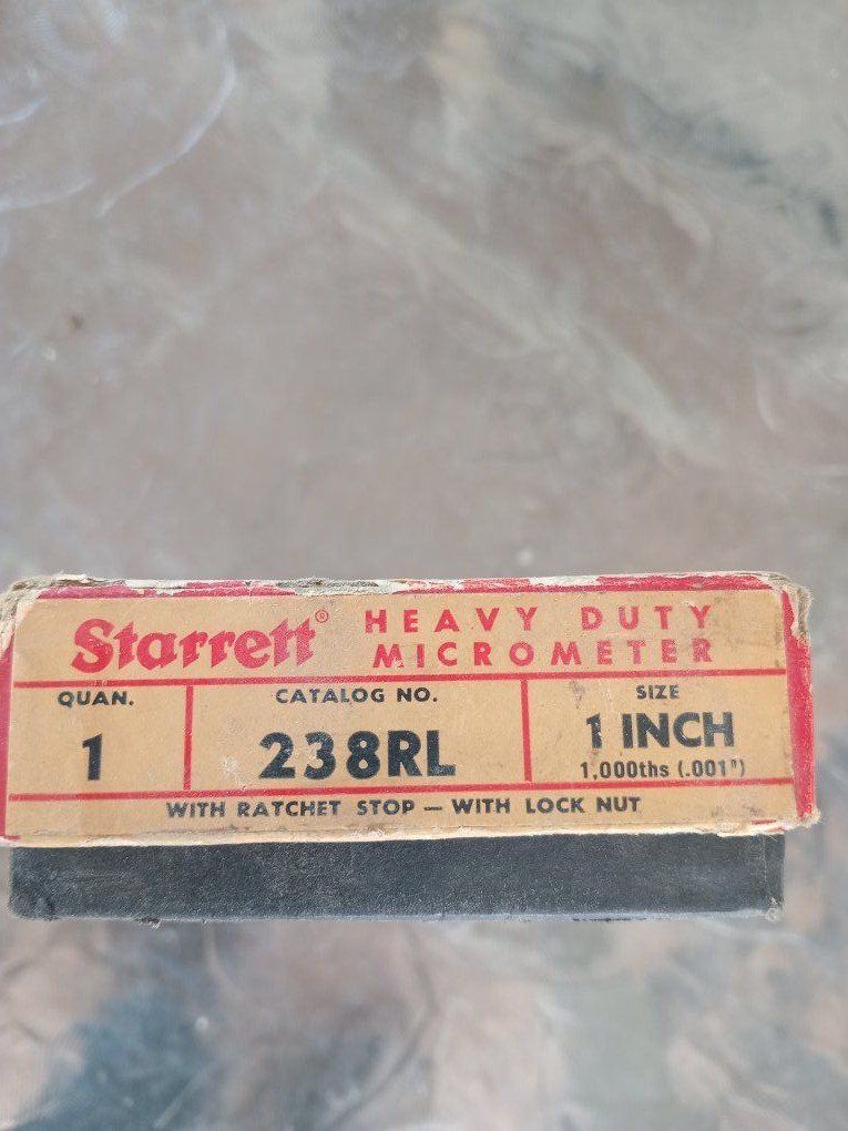 PayPalStarrett No. T238RL Vintage heavy duty outside micrometer, 0-1". Like new condition. With box, instructions, and calibration wrench.