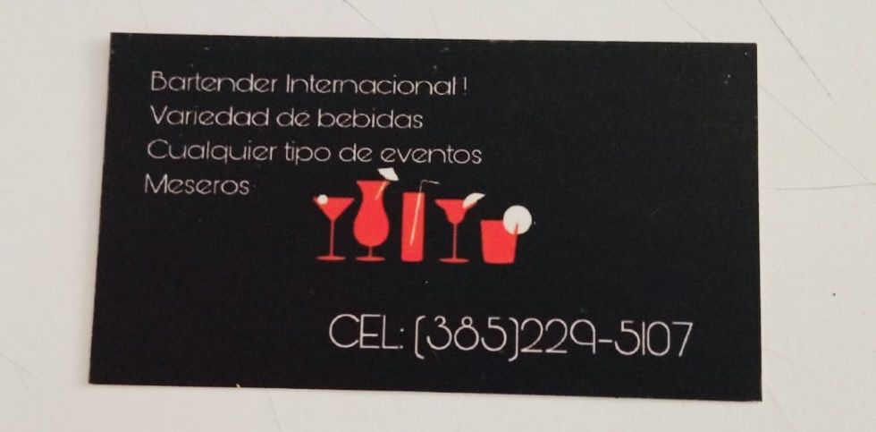 Servicio de Bartender, ( 35$ hrs.) Cualquier tipo de ventó! Cuento con licencia certificada, cualquier pregunta o duda se la puedo resolver, sin ningún compromiso, a sus órdenes! 🫡 Gracias!