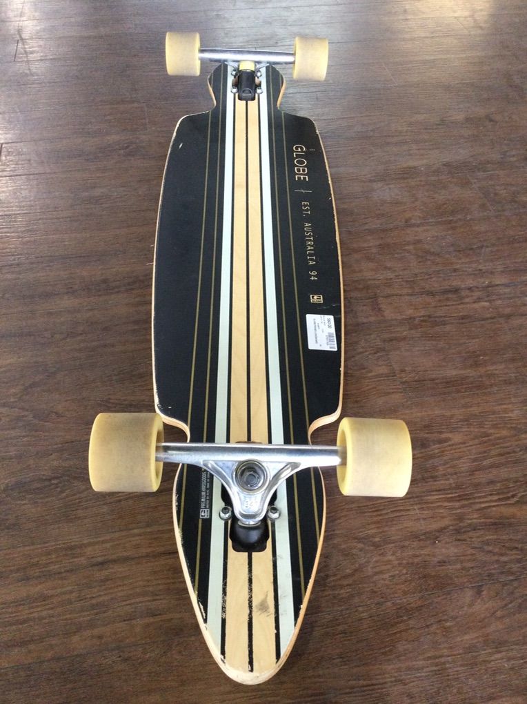Global pinner longboard for sale.Surf-inspired shapes,bamboo constructions,reverse-kingpin trucks and soft urethane wheels.Very good condition.Asking 60.00. 1946 west 5600 south Roy, Utah. 801-776-1122.