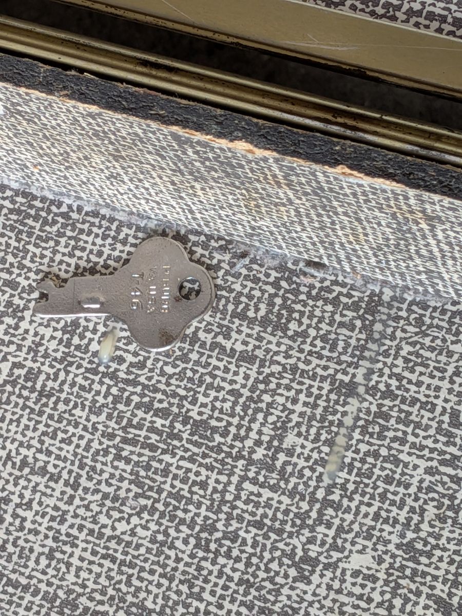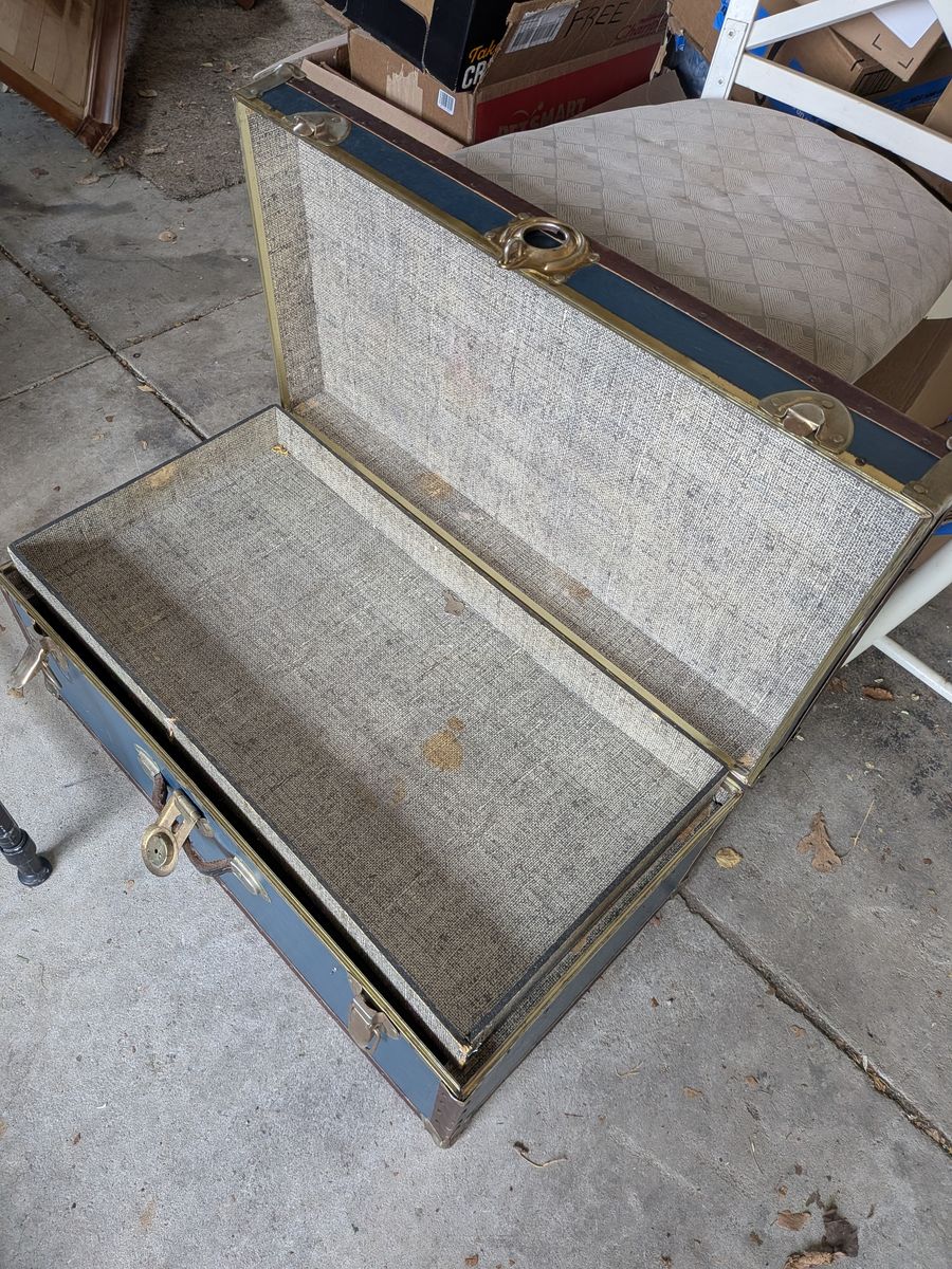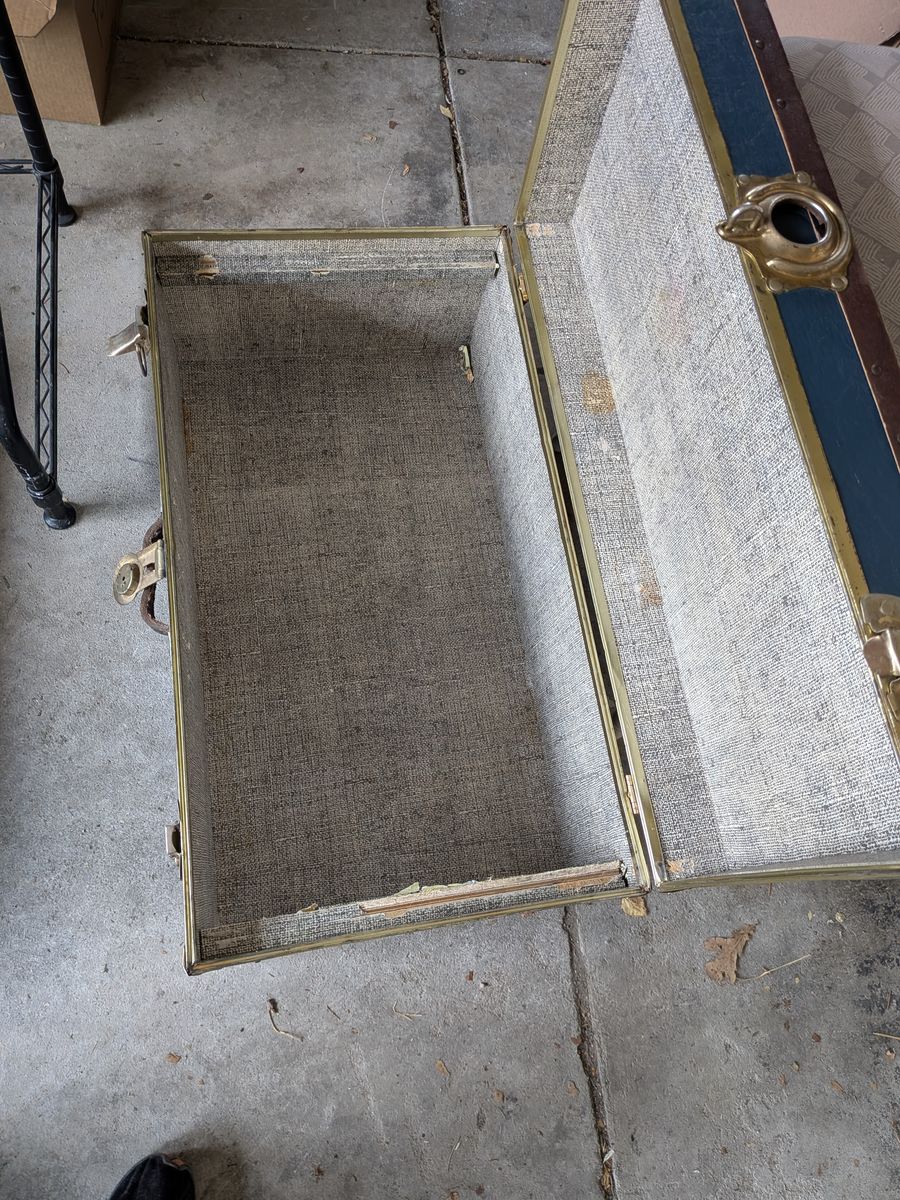 This is an early years chest. It's in fair condition. Comes with insert and key. Outside is in great shape. Inside could use a little restoration. Great decorative piece.