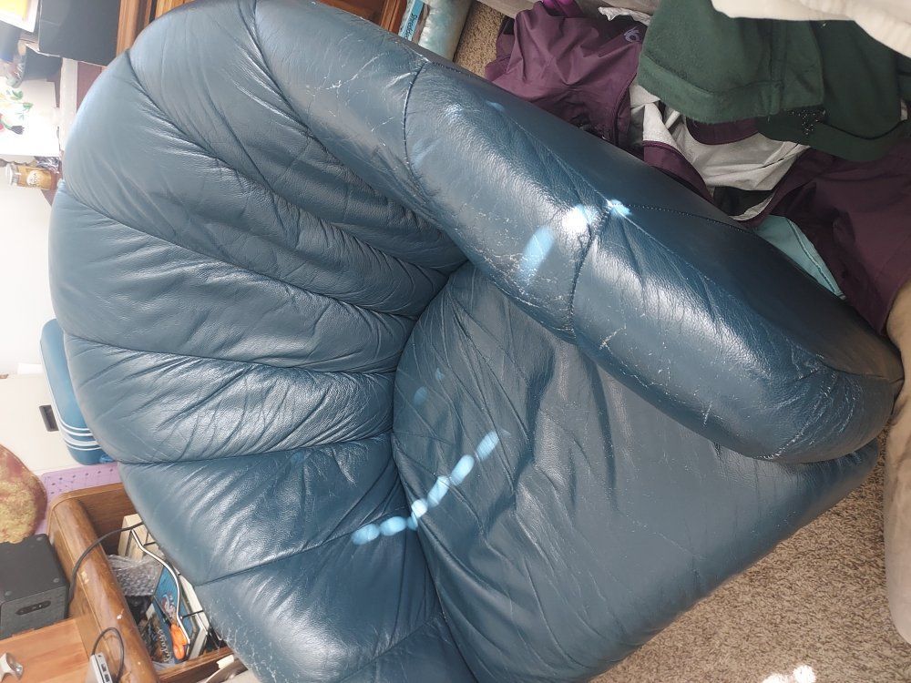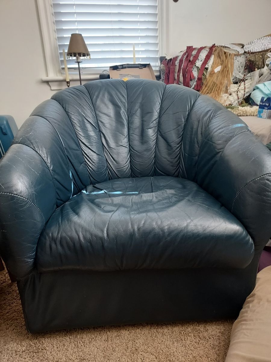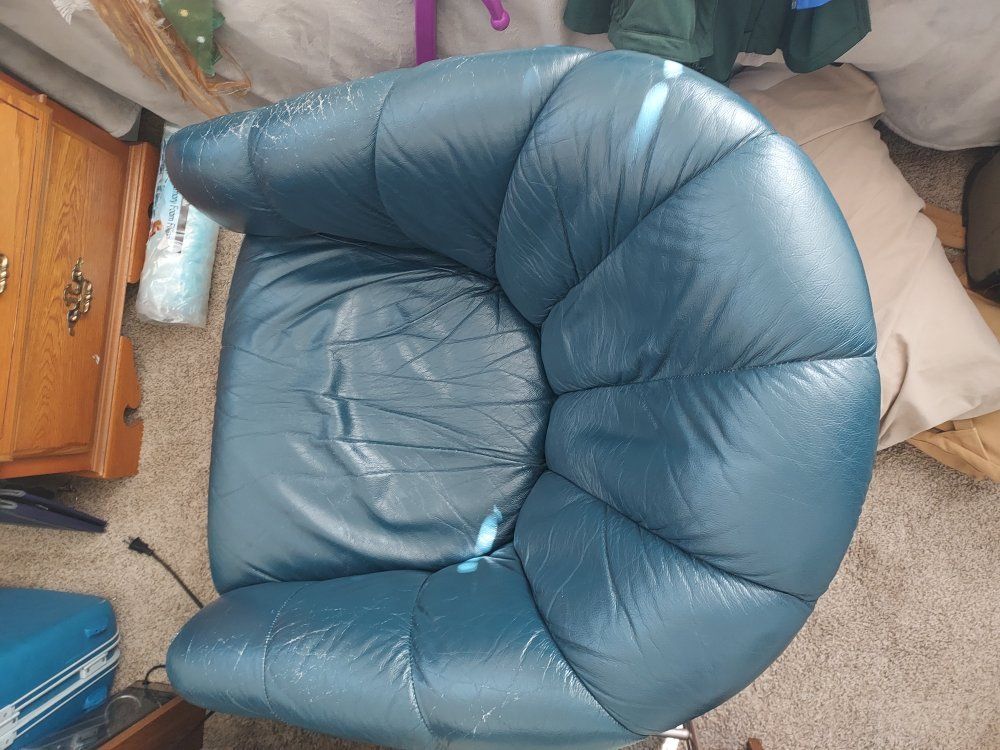 PayPalThese two cool faux-leather chairs are lightweight but well-made. They swivel 360* and rock back and forth some. There is some wear on the arm rests as you can see but otherwise in good condition. I do not know the brand name.