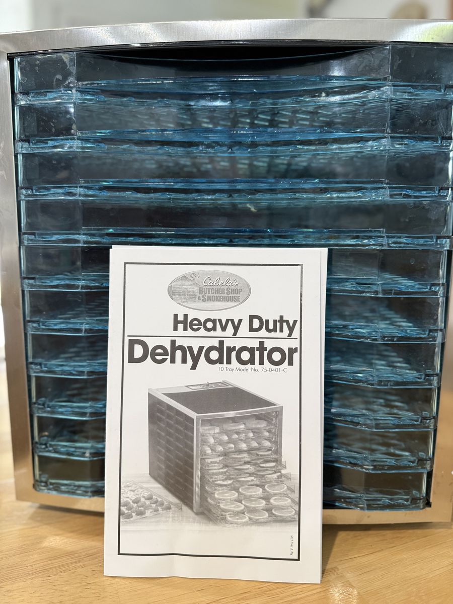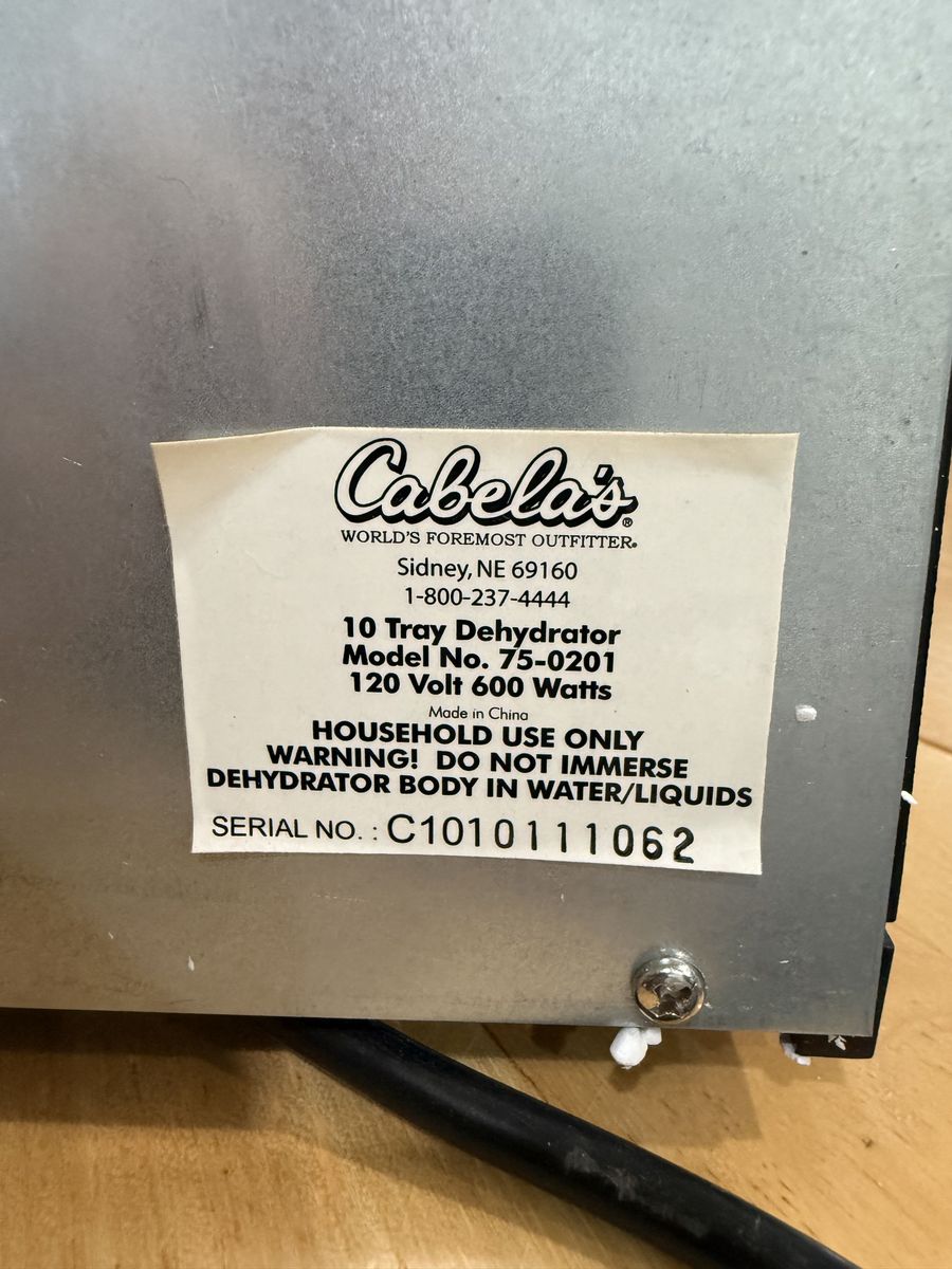 VenmoCrank out lots of delicious, dried fruit and vegetable snacks and jerky at home with Cabela's® Deluxe 10-Tray Dehydrator. This is a great kitchen aid. Used only a couple of times, we went to a larger unit. asking $100 OBO