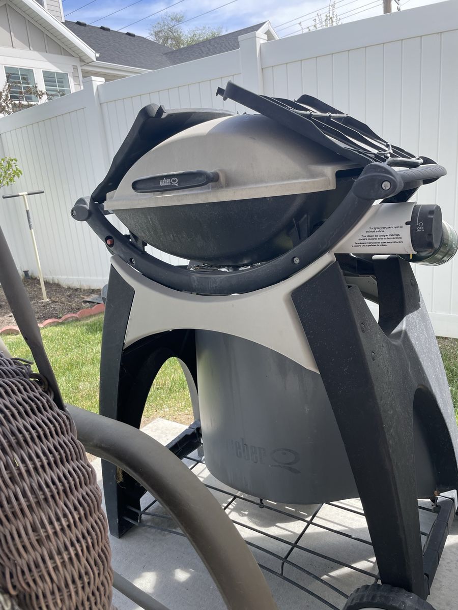 VenmoWeber grill with stand. Needs cleaning and an ignition switch. Can used with small propane tank or has a hose to hook up to a large tank or gas line.