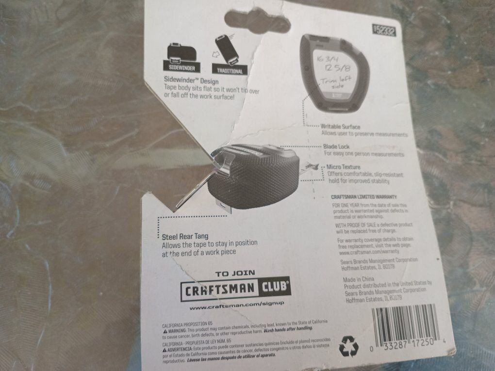 PayPalRare Vintage Craftsman 25' Sidewinder Tape Measure 9-52332 NOS new and sealed. No longer made, so is a real collector's item.